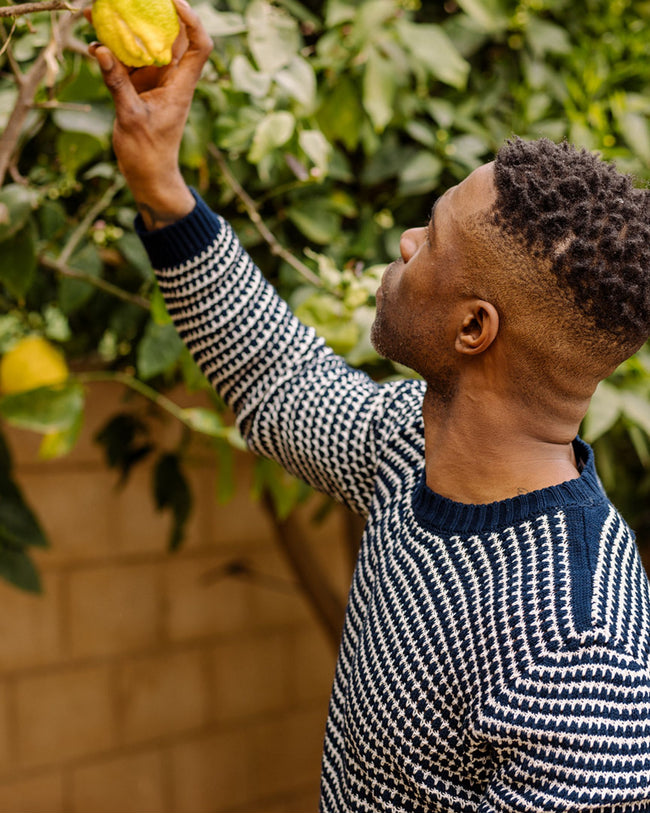 A lightweight super soft crew neck jumper that doesn't compromise on style. Its crochet design provides a lightweight and breathable feel, offering greater movement whilst maintaining its eye-catching appearance. The Island jumper has a subtle pause logo knitted across the back of the garment, representing the importance of slowing down and enjoying the moment.