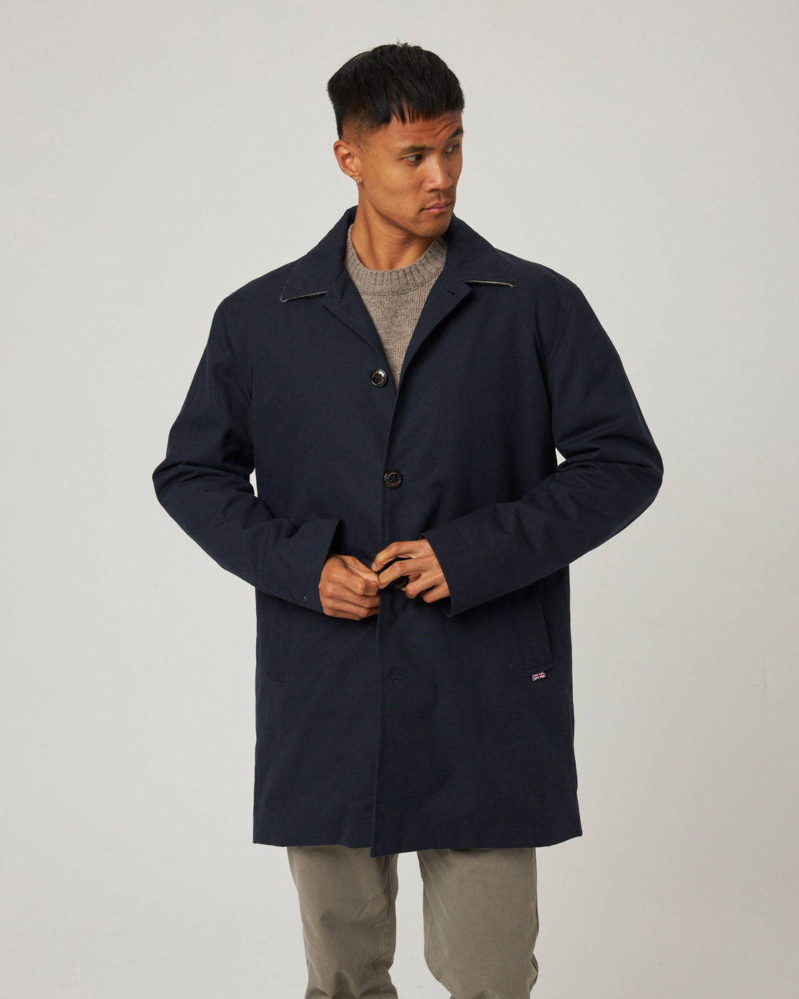 Made with British Millerain’s Cambric 8 Waxed Cotton this Trench Coat offers water-resistance without the Waxy feel, it has a 100% wool liner which adds additional comfort and warmth making this trench coat a staple for your wardrobe. Our street trench has two welt pockets, making it the perfect coat for daily wear, whilst not compromising on style.