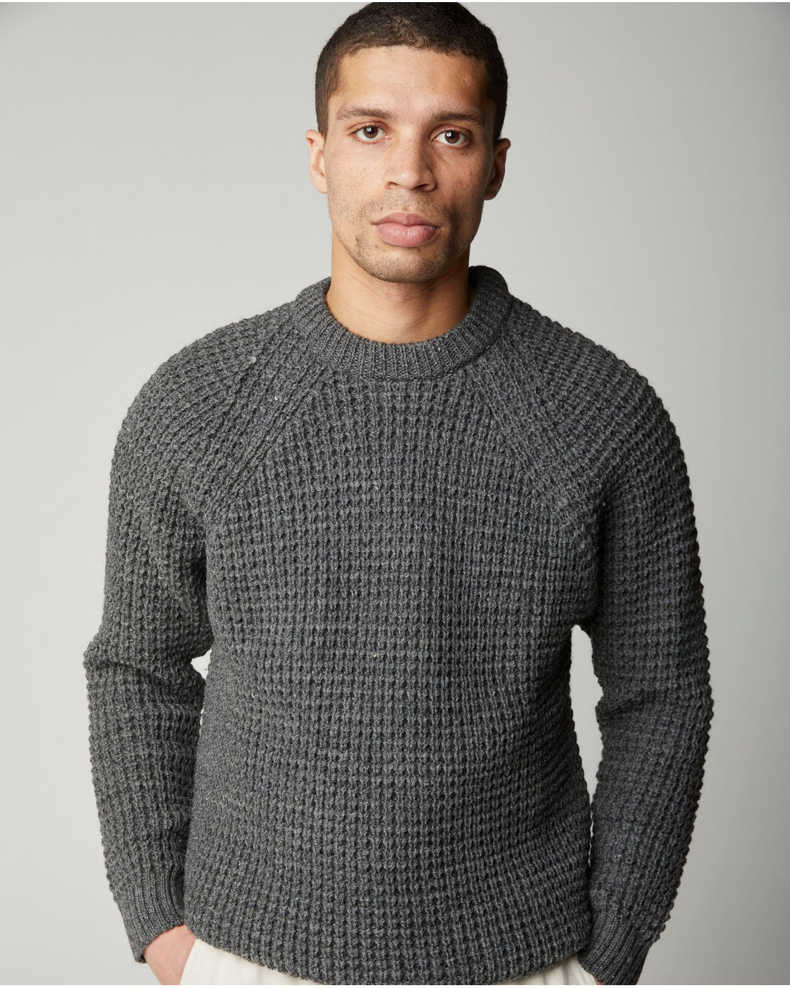 A traditional waffle knit to keep you looking stylish throughout the year. Composed of 100% British wool sheared from Yorkshire-raised sheep just 60 miles away from our factory and updated with a contemporary raglan sleeve to give it that casual feel, the Waffle Crew Jumper is a reliable staple for any wardrobe.