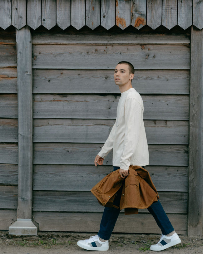 Made from a heavier and thicker fabric than other tees, the Long Sleeve T-Shirt provides a quality fit and greater resistance to wrinkles. With added graphics of brand details on the front and back of the t-shirt, this long-sleeved tee provides a quality first layer to any outfit.