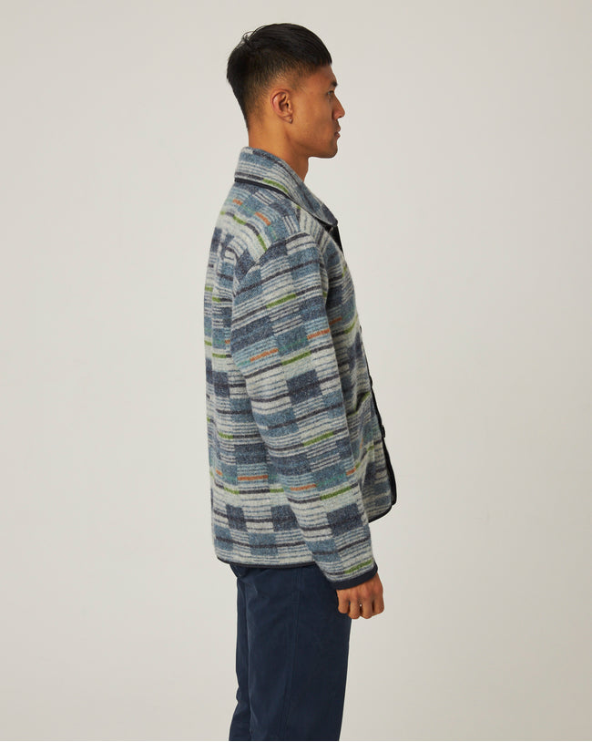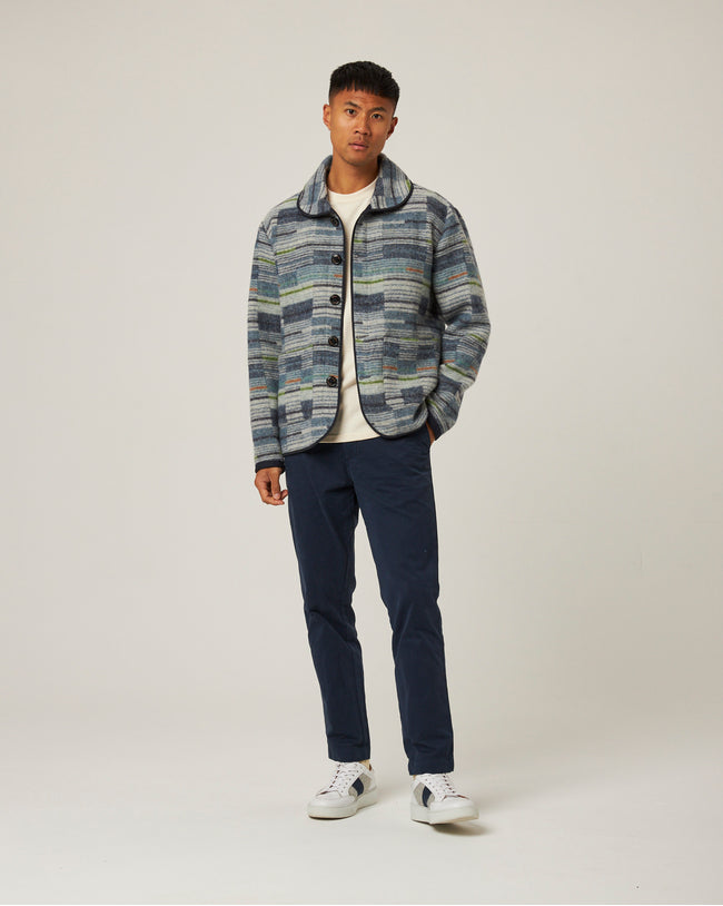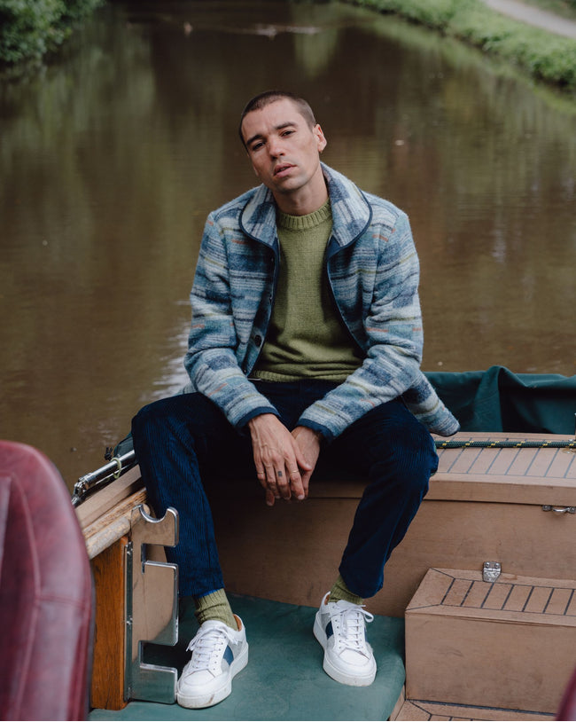 This men's shacket features a relaxed fit and a unique shawl collar, perfect for layering with your favourite winter outfits. Similar to our wool overshirt, it's crafted from classic tweed, traditionally woven at Abraham Moon, one of the oldest wool mills in the UK. This versatile and stylish wool shacket adds dimension and warmth to your winter wardrobe.
