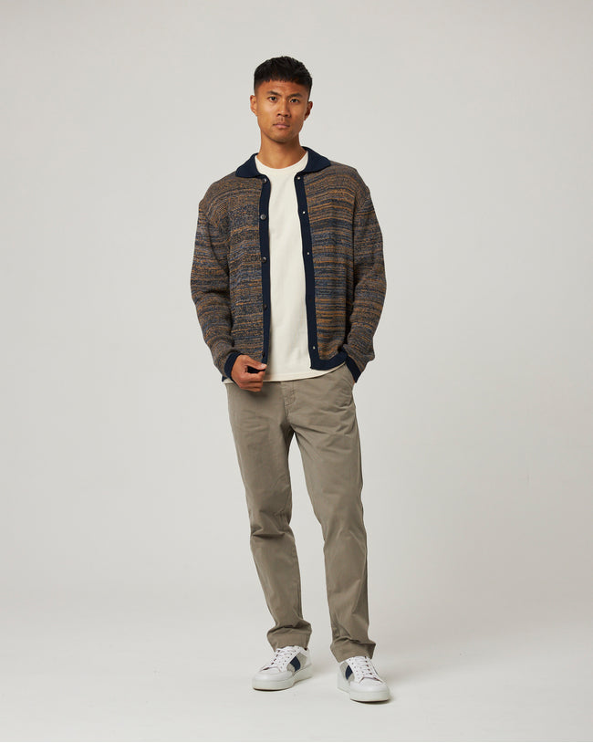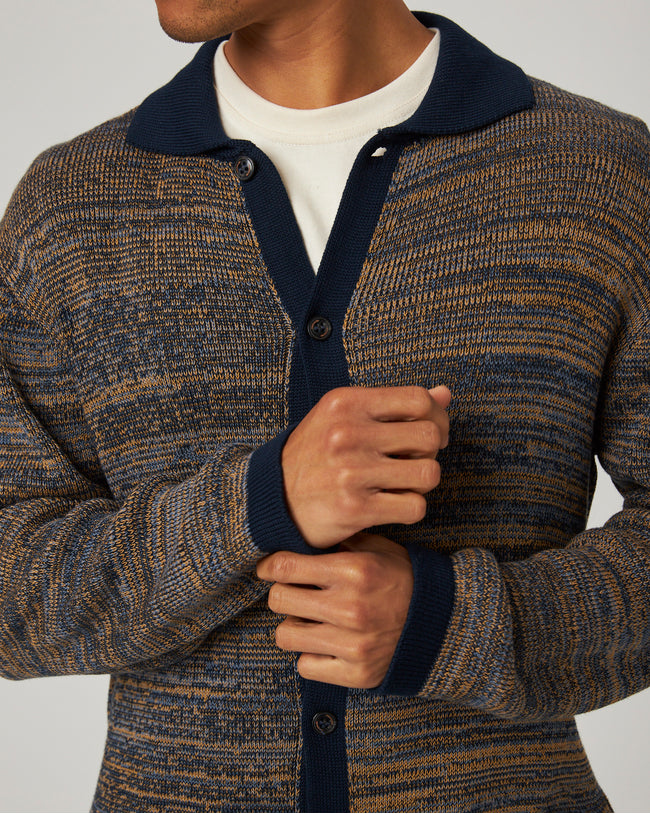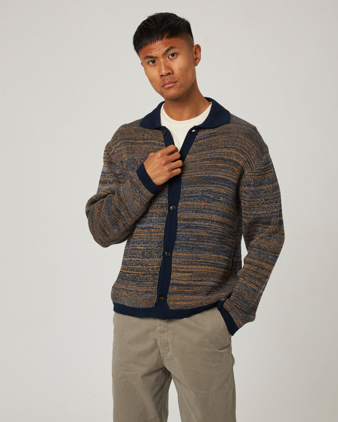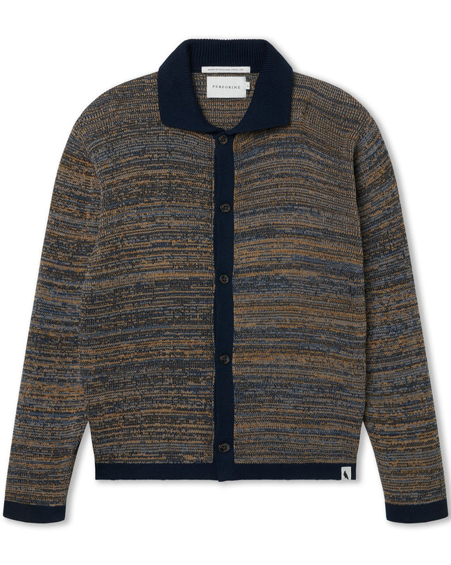 A knitted shirt for transitioning through the seasons. Made from 100% cotton, this button-through shirt provides a smart-casual flowing appearance with intricate knitted details woven into its block colour. Finished with navy trimmings, this knitted piece is eye-catching with a timeless finish.