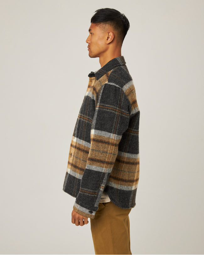 Made with a classic tweed that’s still woven the traditional way at the Abraham Moon, one of the oldest wool mills in the UK, our Wool Overshirt can be thrown over t-shirts, paired with a sweater or layered with an overcoat when the weather turns colder. Its versatility makes it the perfect shirt jacket hybrid.