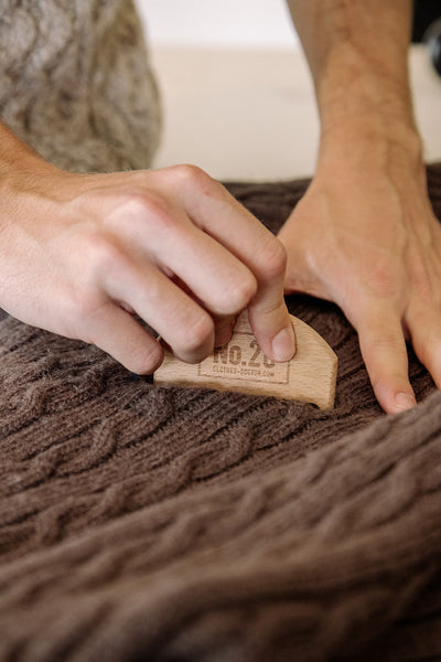 Hand wash in cold water only. We recommend using Shear Delight's Wool Wash Bar. Then lay flat to dry. Do not wash using a washing machine.