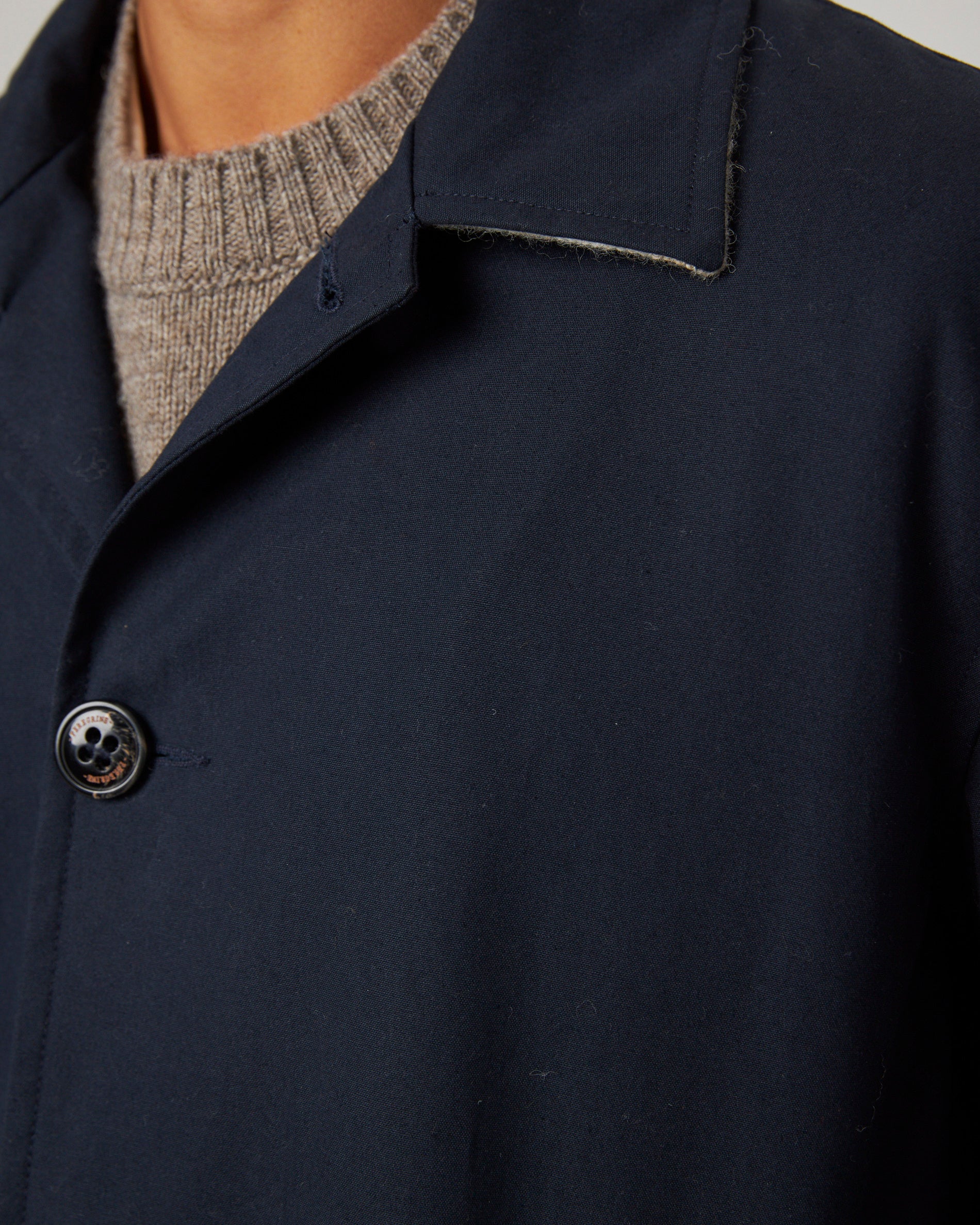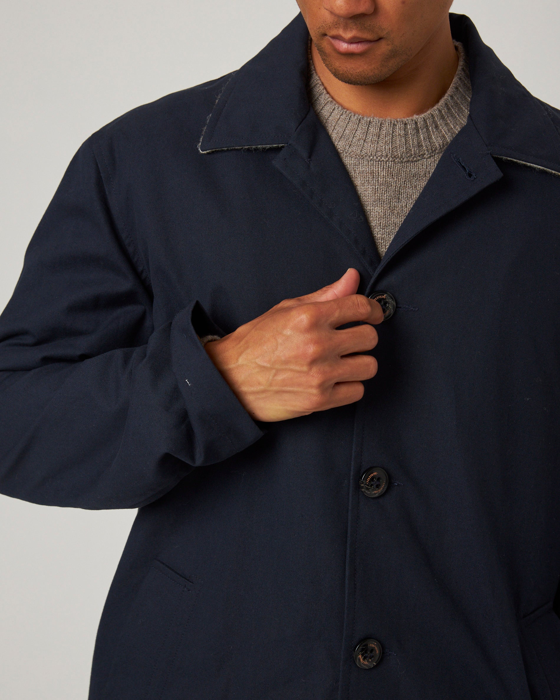 Made with British Millerain’s Cambric 8 Waxed Cotton this Trench Coat offers water-resistance without the Waxy feel, it has a 100% wool liner which adds additional comfort and warmth making this trench coat a staple for your wardrobe. Our street trench has two welt pockets, making it the perfect coat for daily wear, whilst not compromising on style.