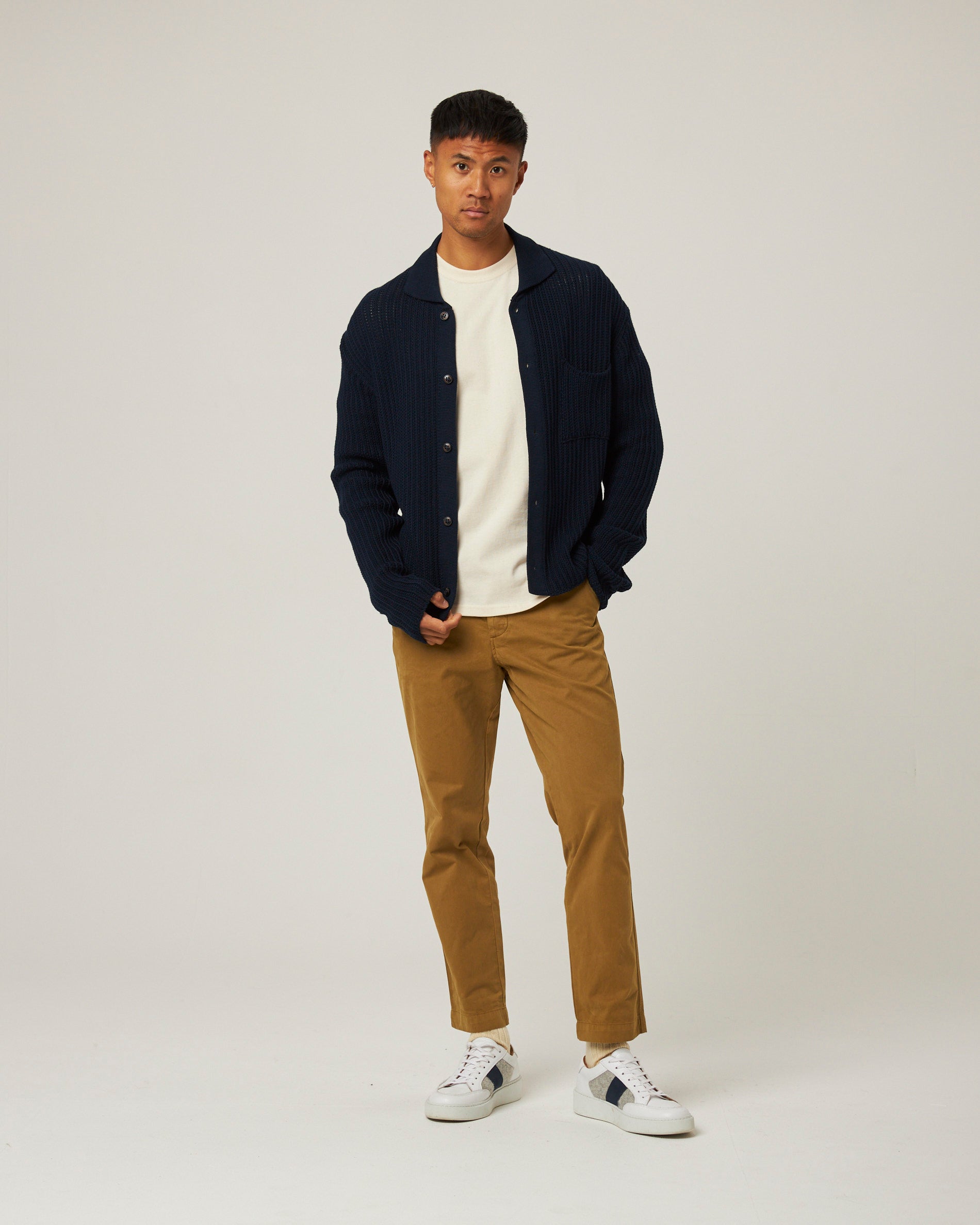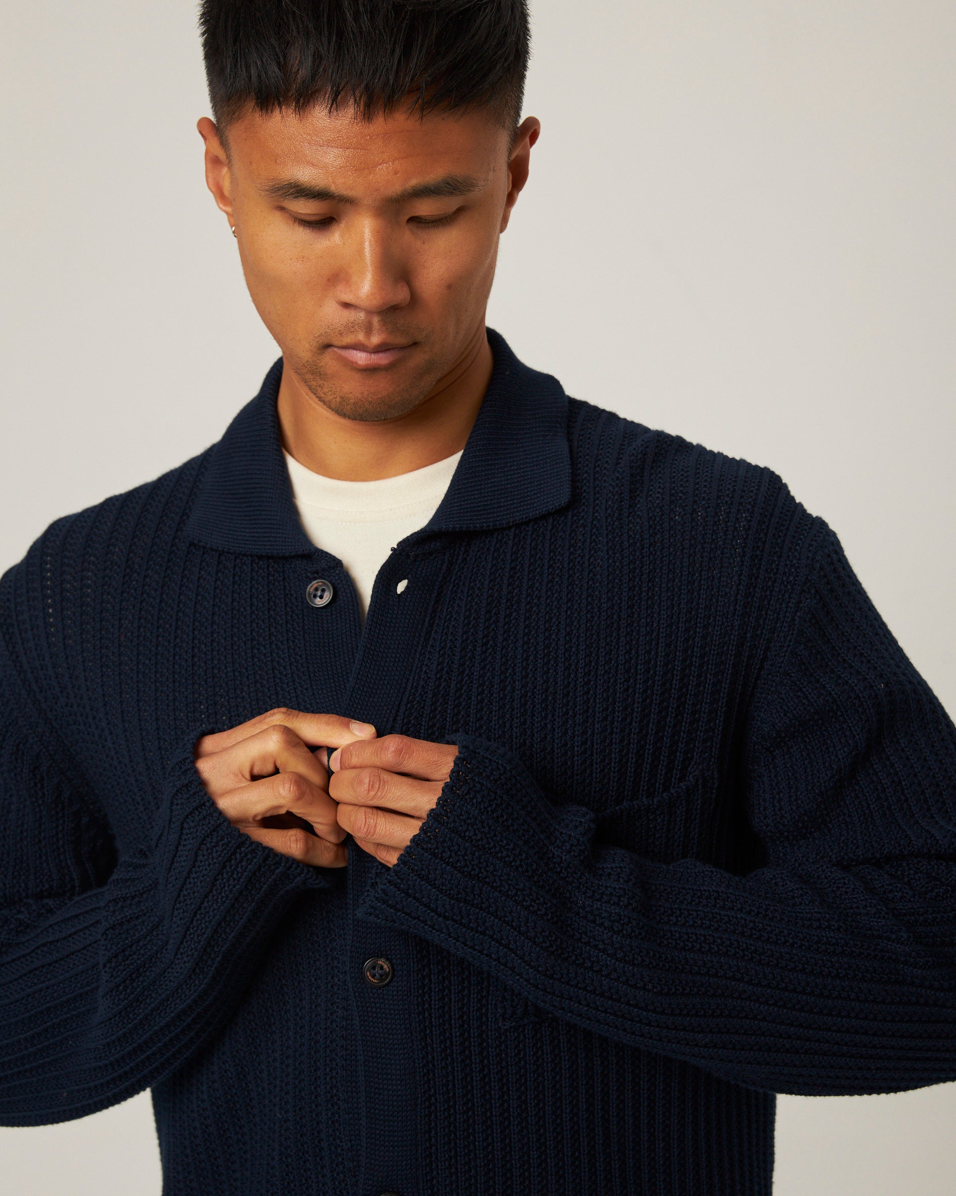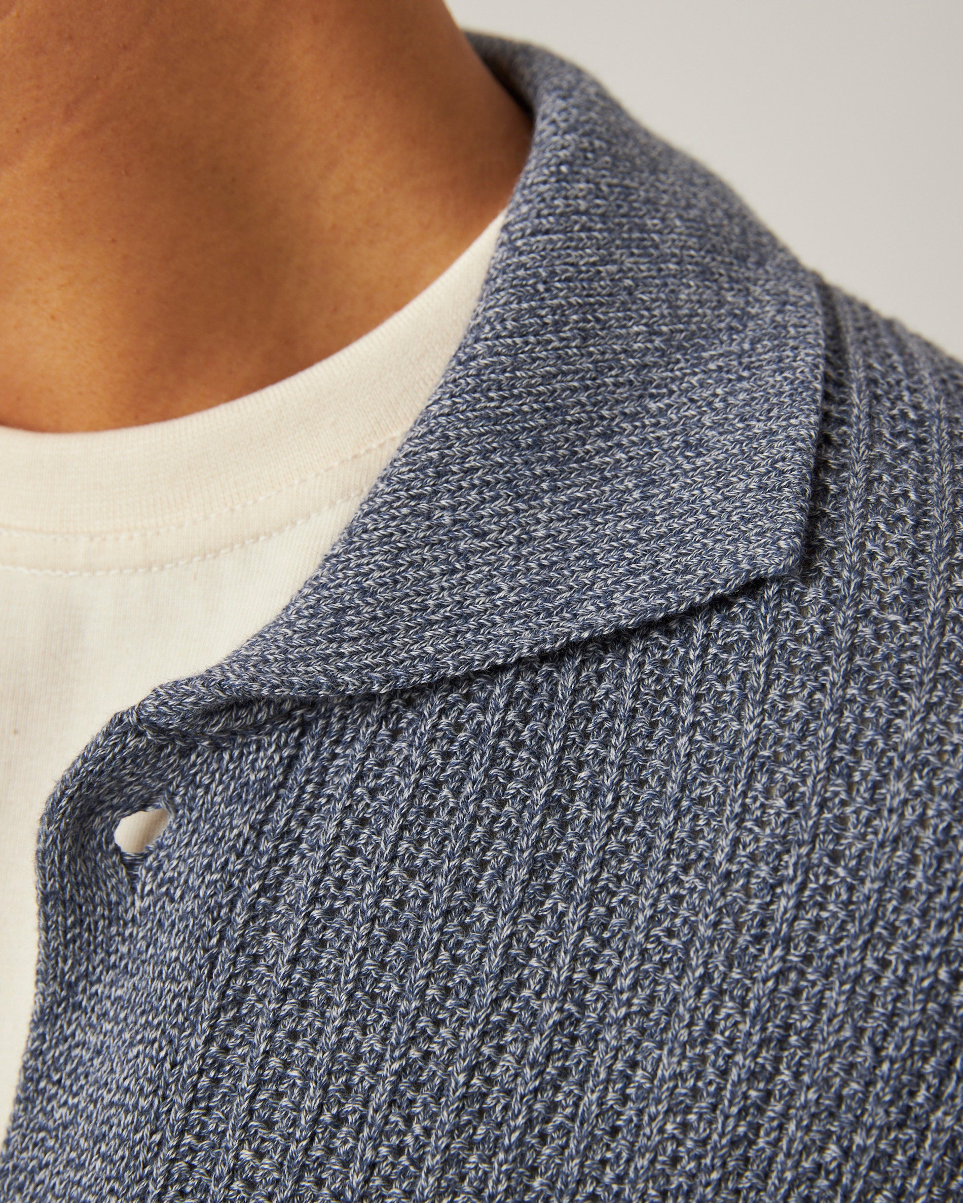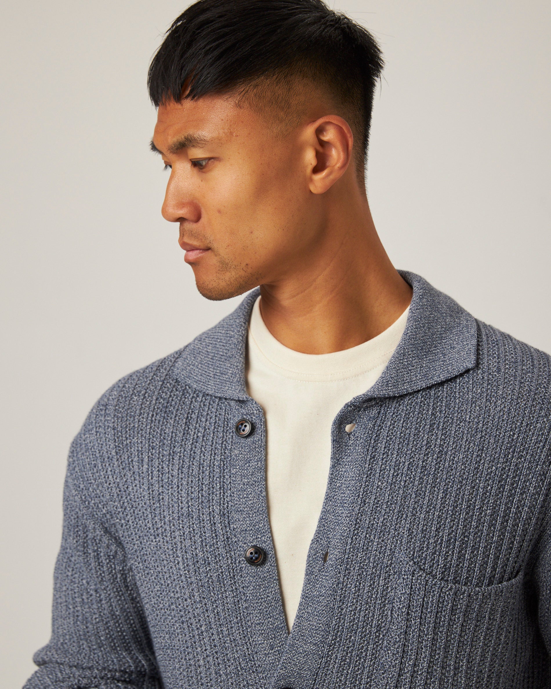 This stylish 100% cotton knitted shirt is designed for effortless wear with any outfit. This unique men's garment blends elements of a classic shirt with the comfort of a traditional knitted cardigan. The fine knit and cotton yarn make our Jasper shirt a perfect transitional piece for your everyday wardrobe, offering versatile style for changing seasons.