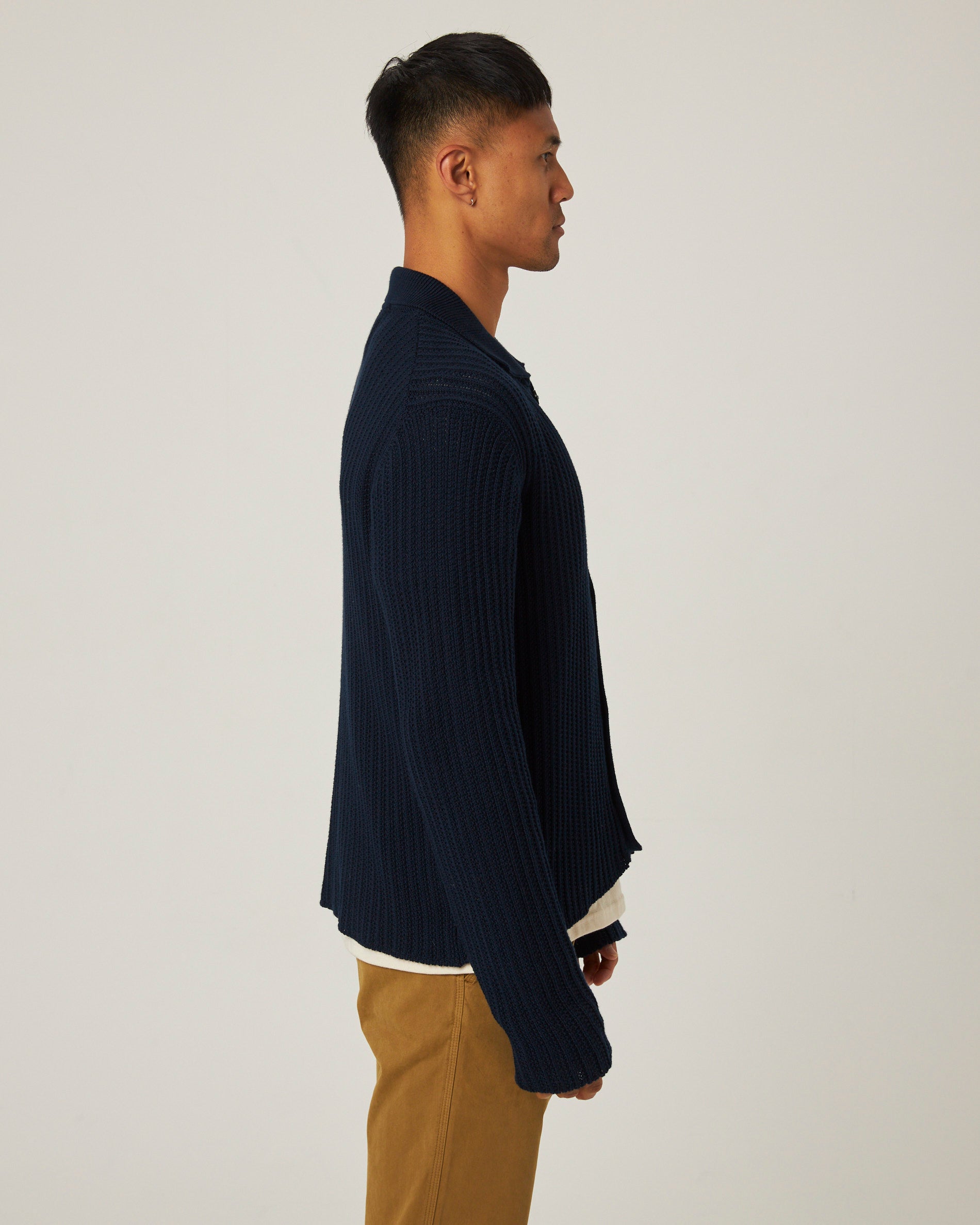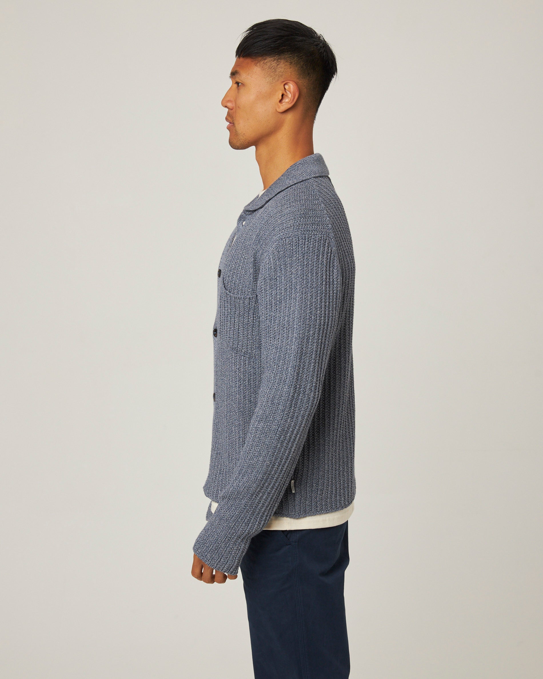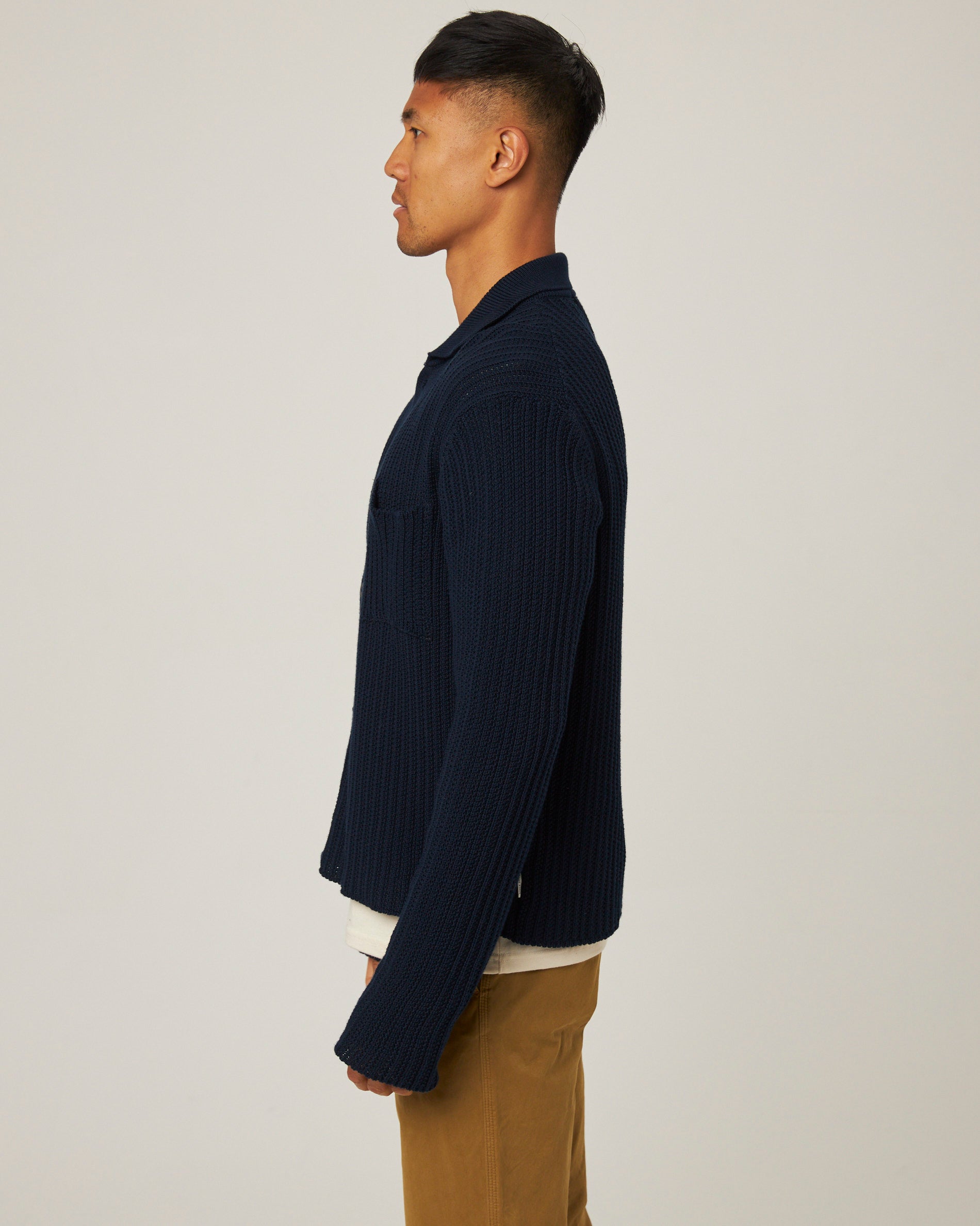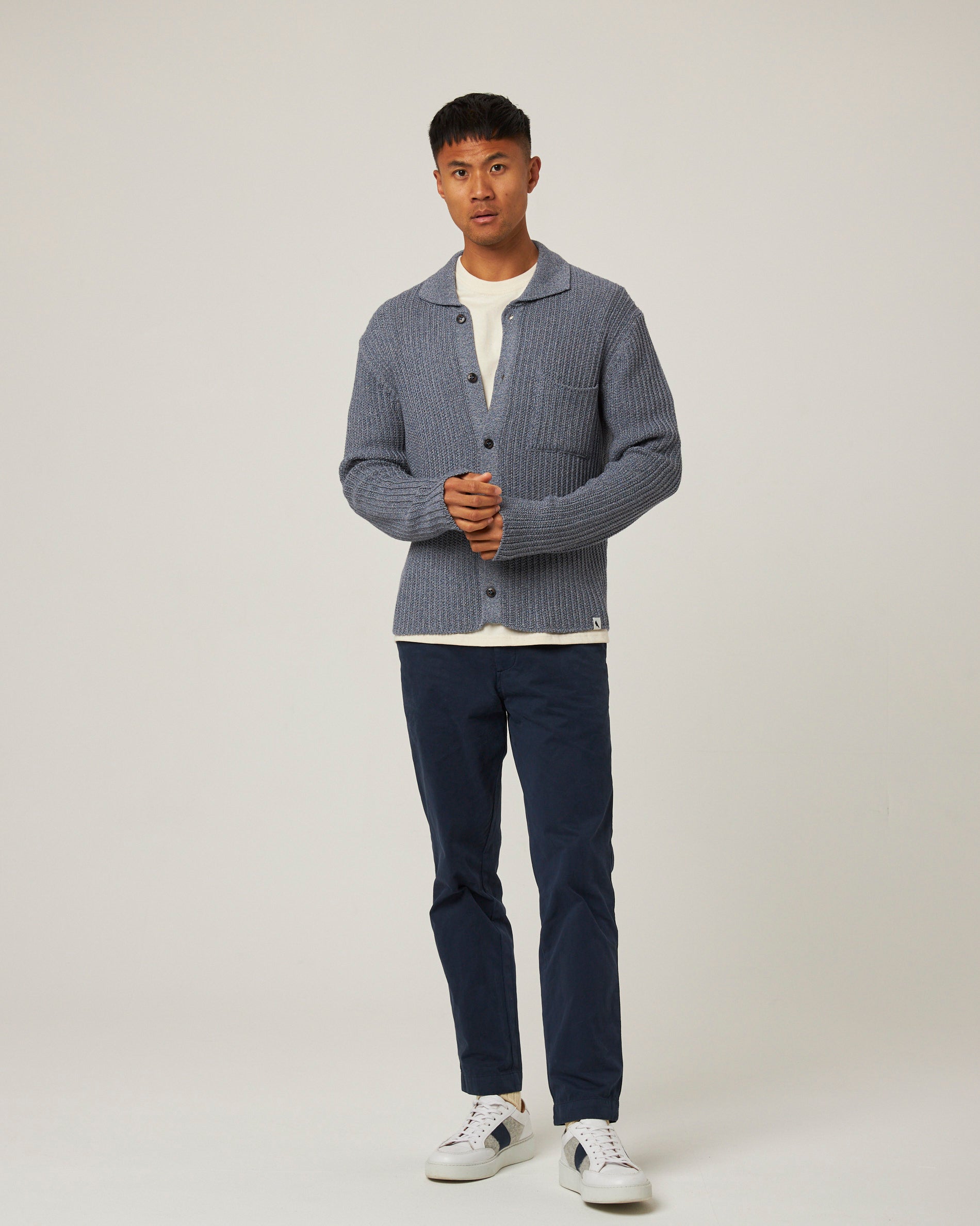 This stylish 100% cotton knitted shirt is designed for effortless wear with any outfit. This unique men's garment blends elements of a classic shirt with the comfort of a traditional knitted cardigan. The fine knit and cotton yarn make our Jasper shirt a perfect transitional piece for your everyday wardrobe, offering versatile style for changing seasons.