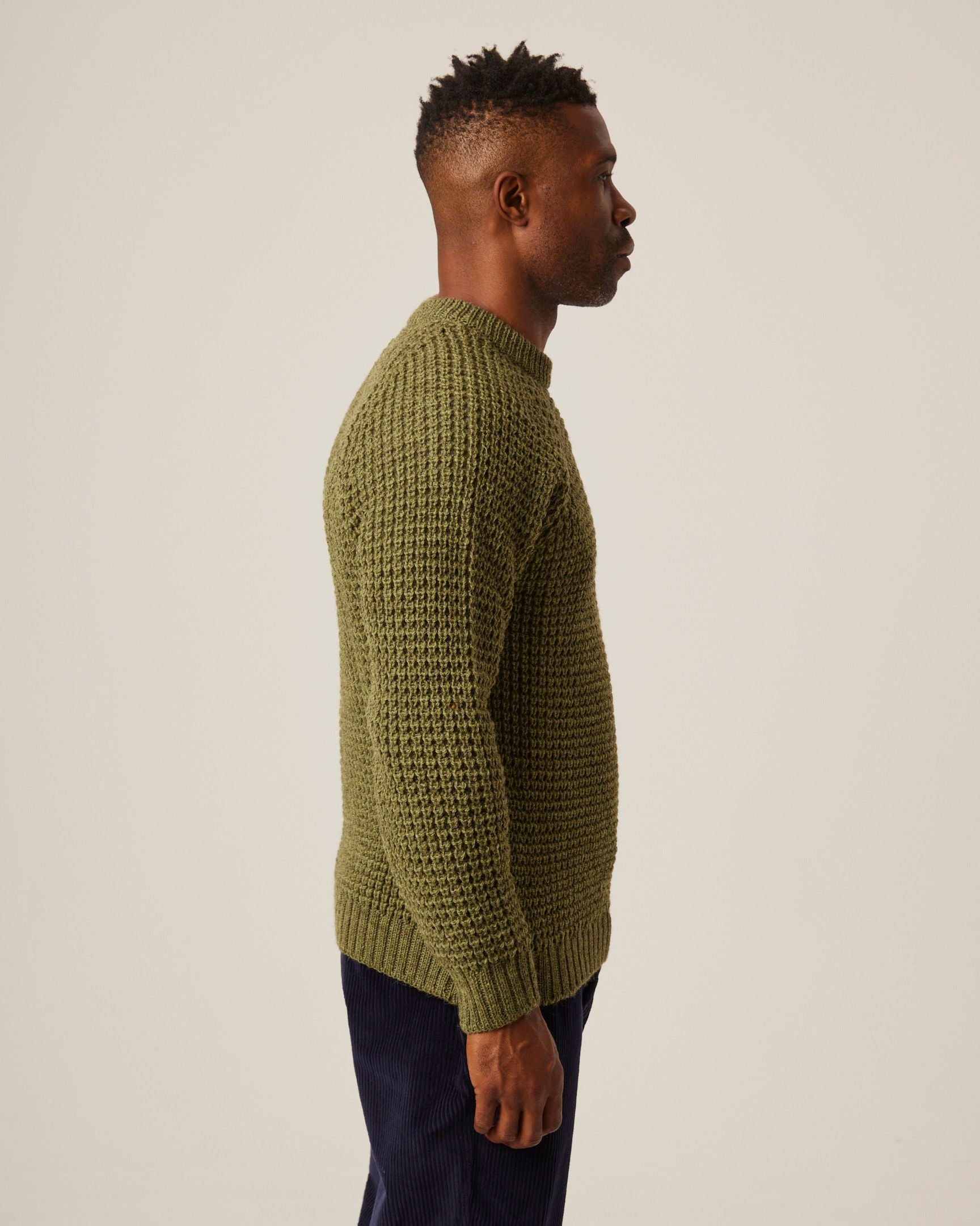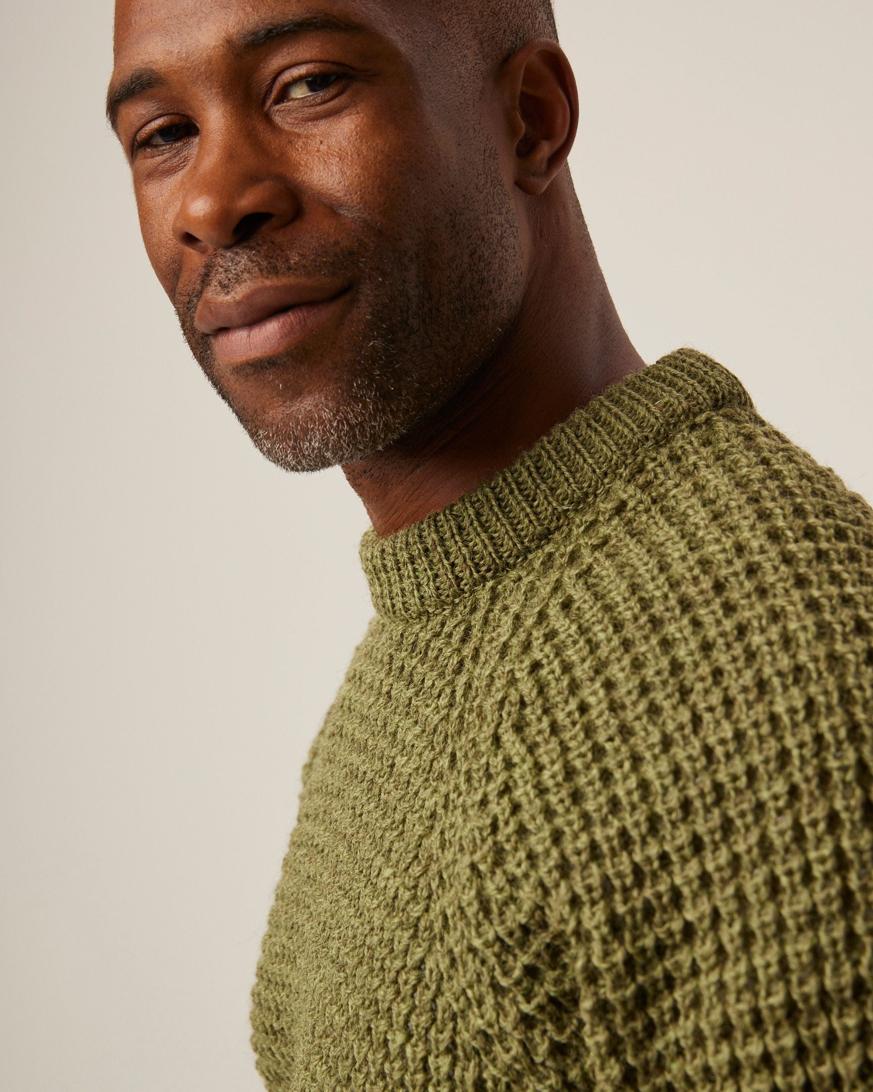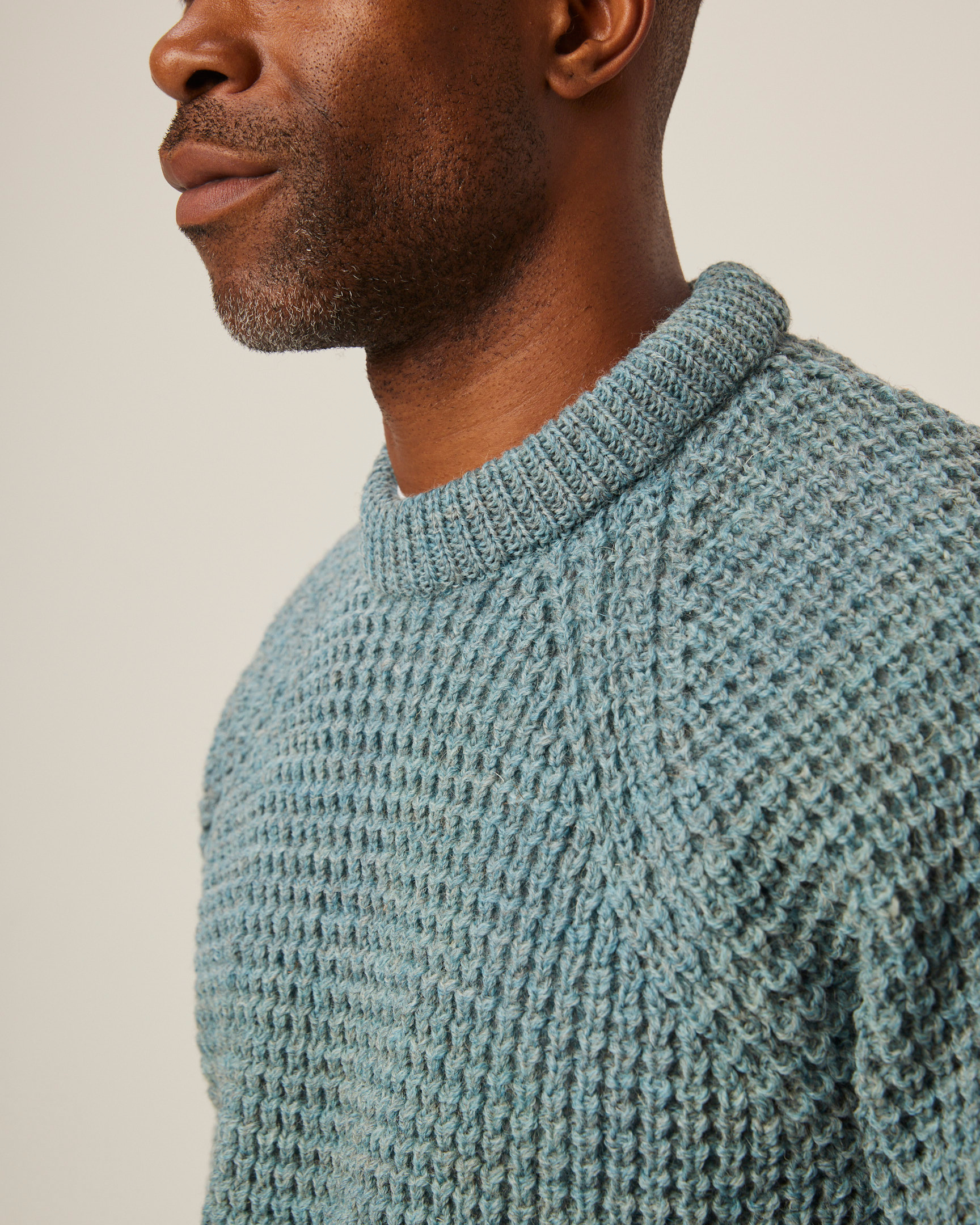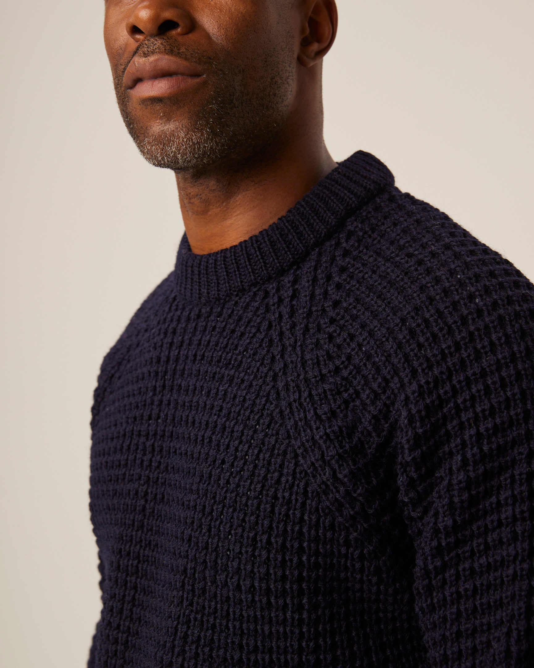 A traditional waffle knit to keep you looking stylish throughout the year. Composed of 100% British wool sheared from Yorkshire-raised sheep just 60 miles away from our factory and updated with a contemporary raglan sleeve to give it that casual feel, the Waffle Crew Jumper is a reliable staple for any wardrobe.