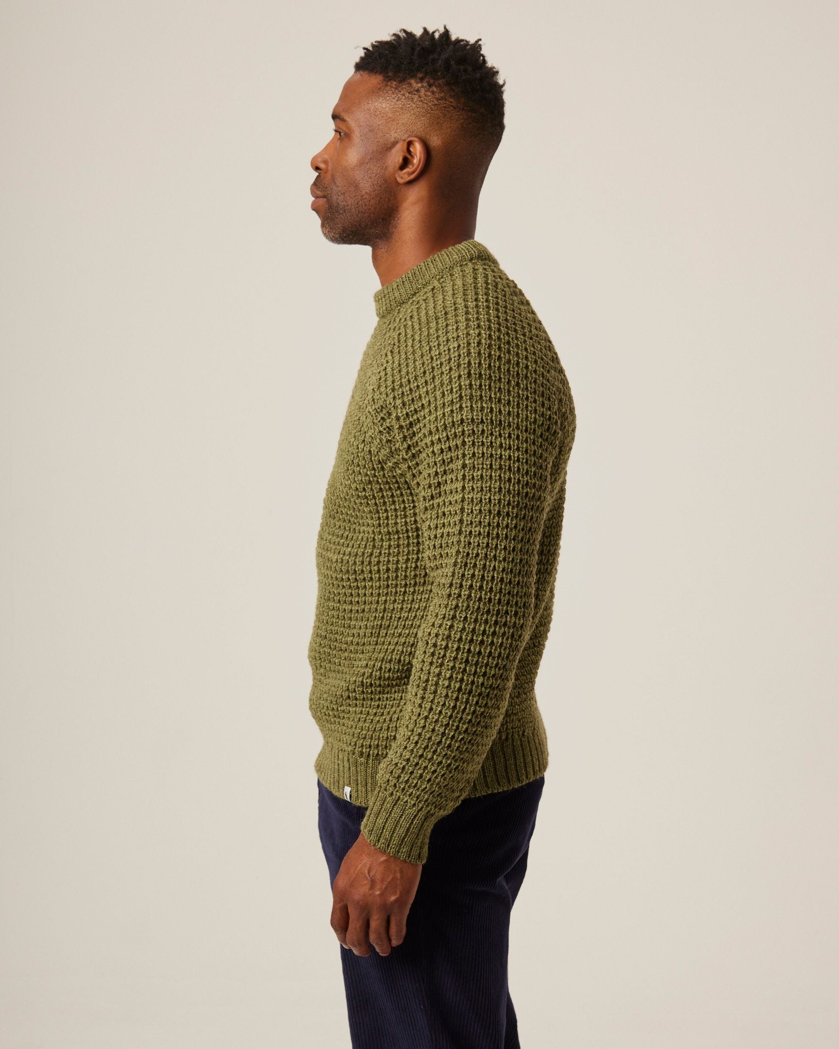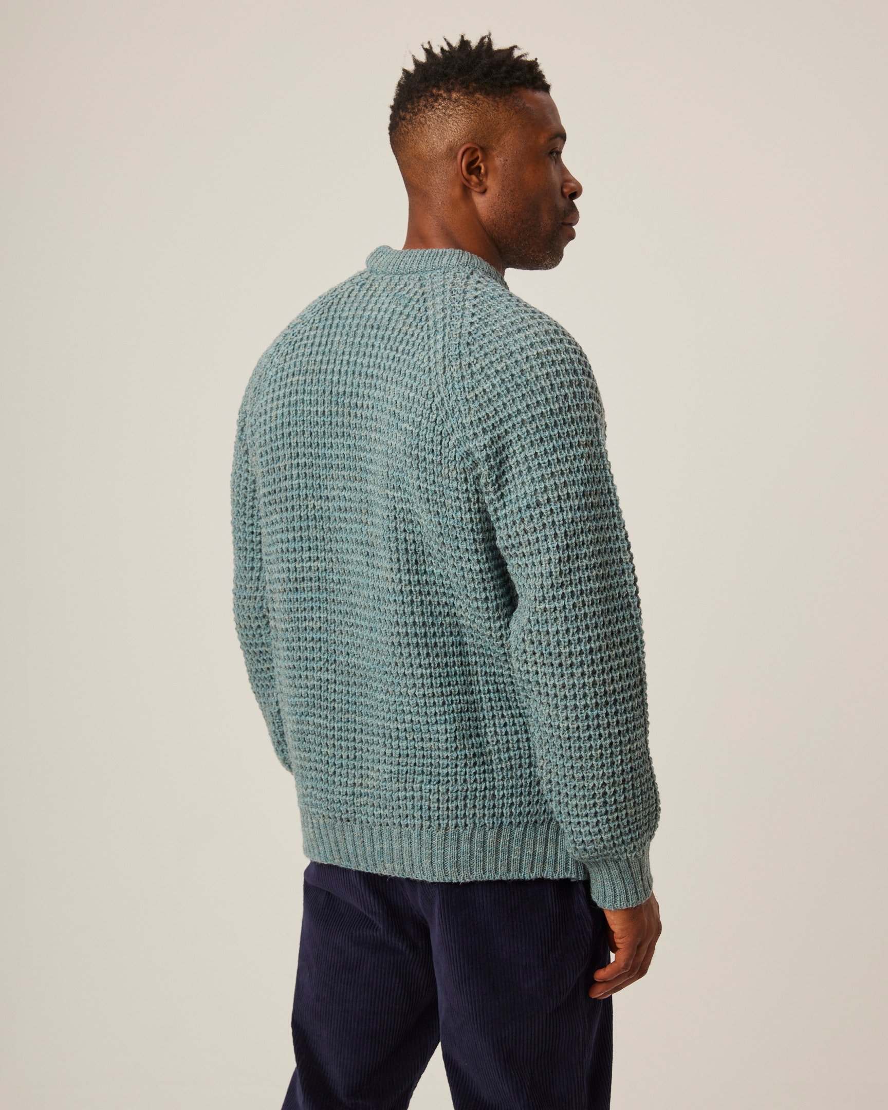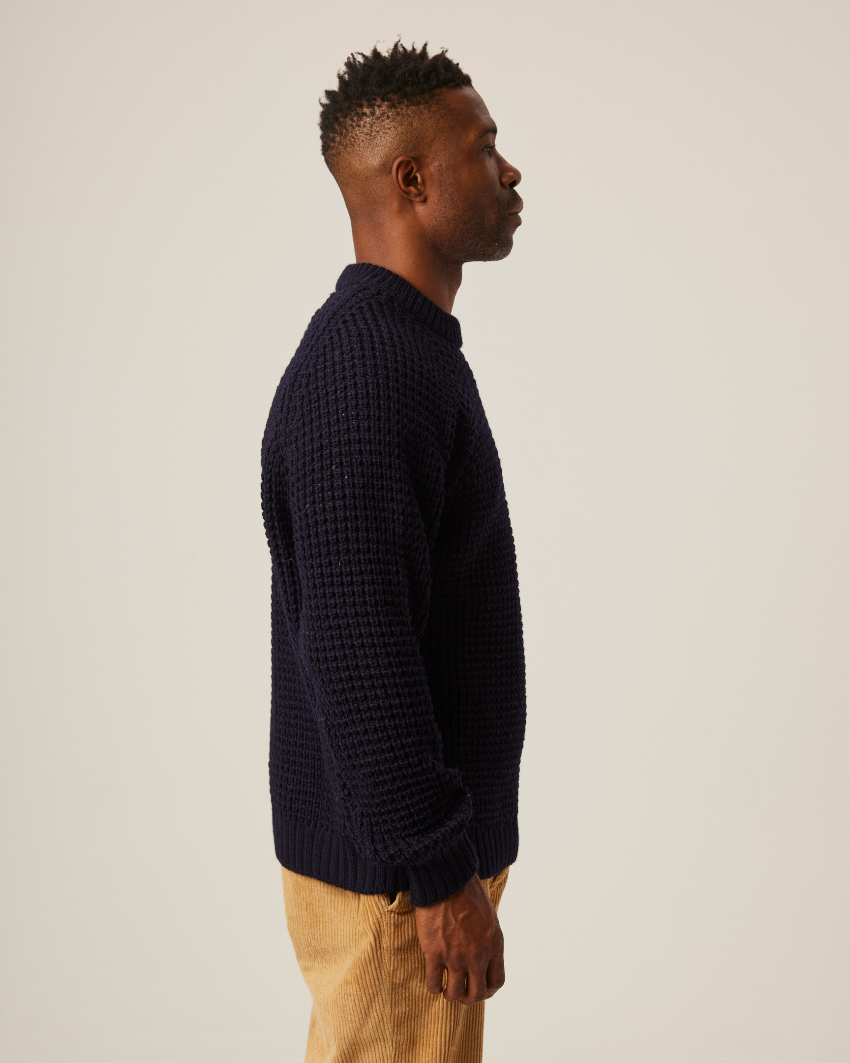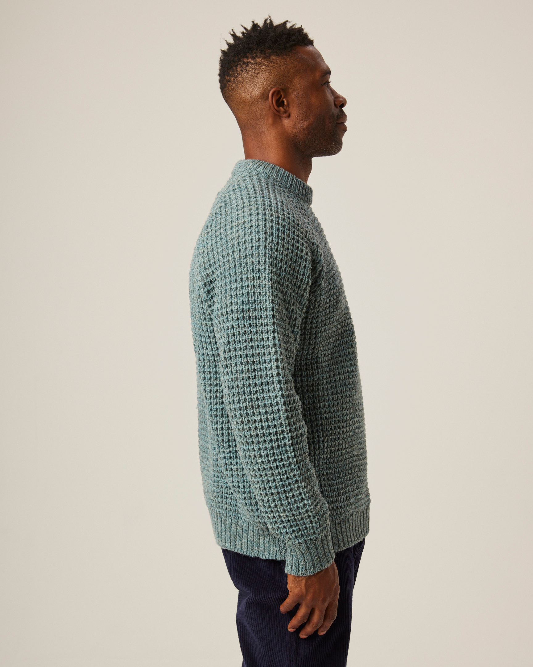 A traditional waffle knit to keep you looking stylish throughout the year. Composed of 100% British wool sheared from Yorkshire-raised sheep just 60 miles away from our factory and updated with a contemporary raglan sleeve to give it that casual feel, the Waffle Crew Jumper is a reliable staple for any wardrobe.