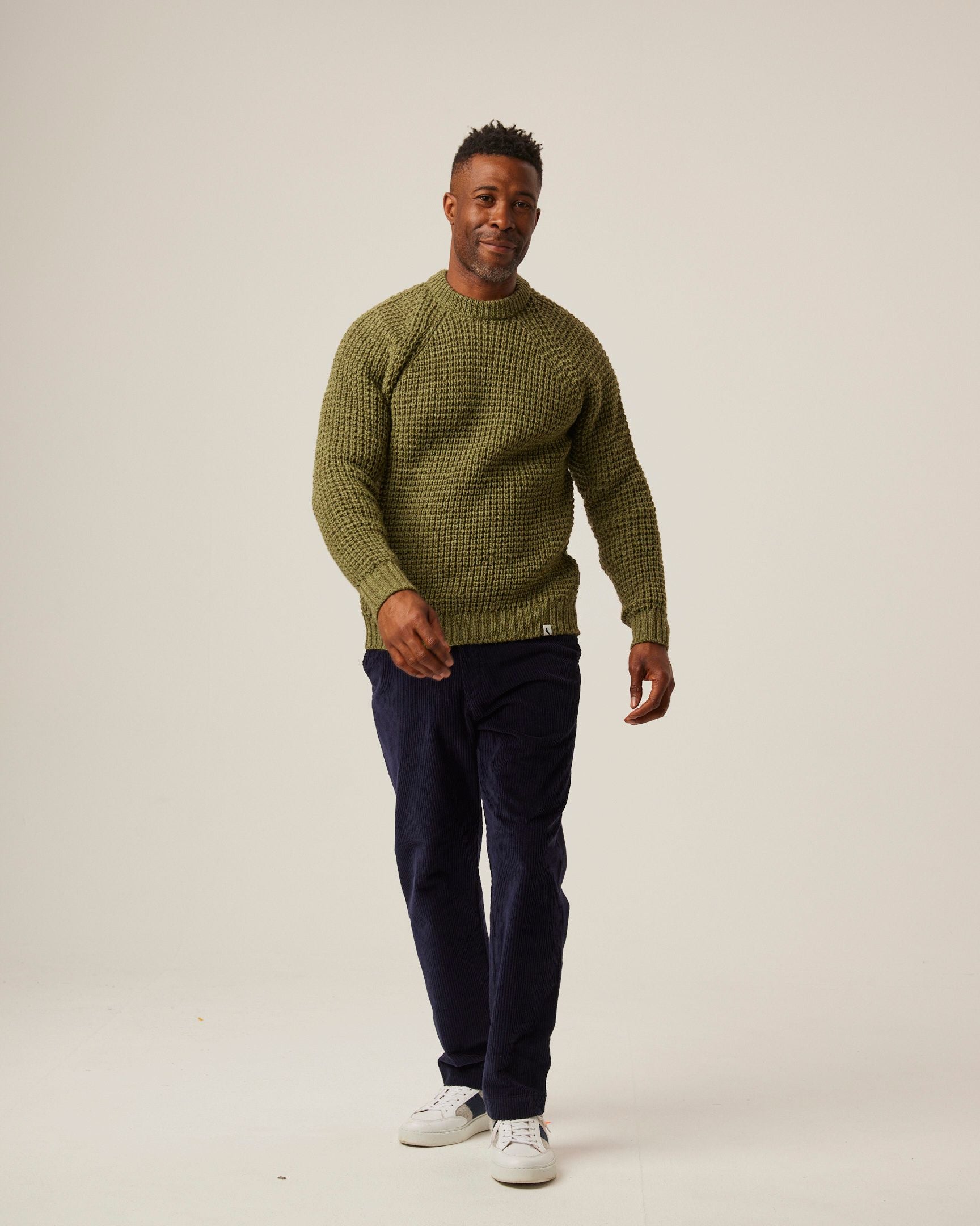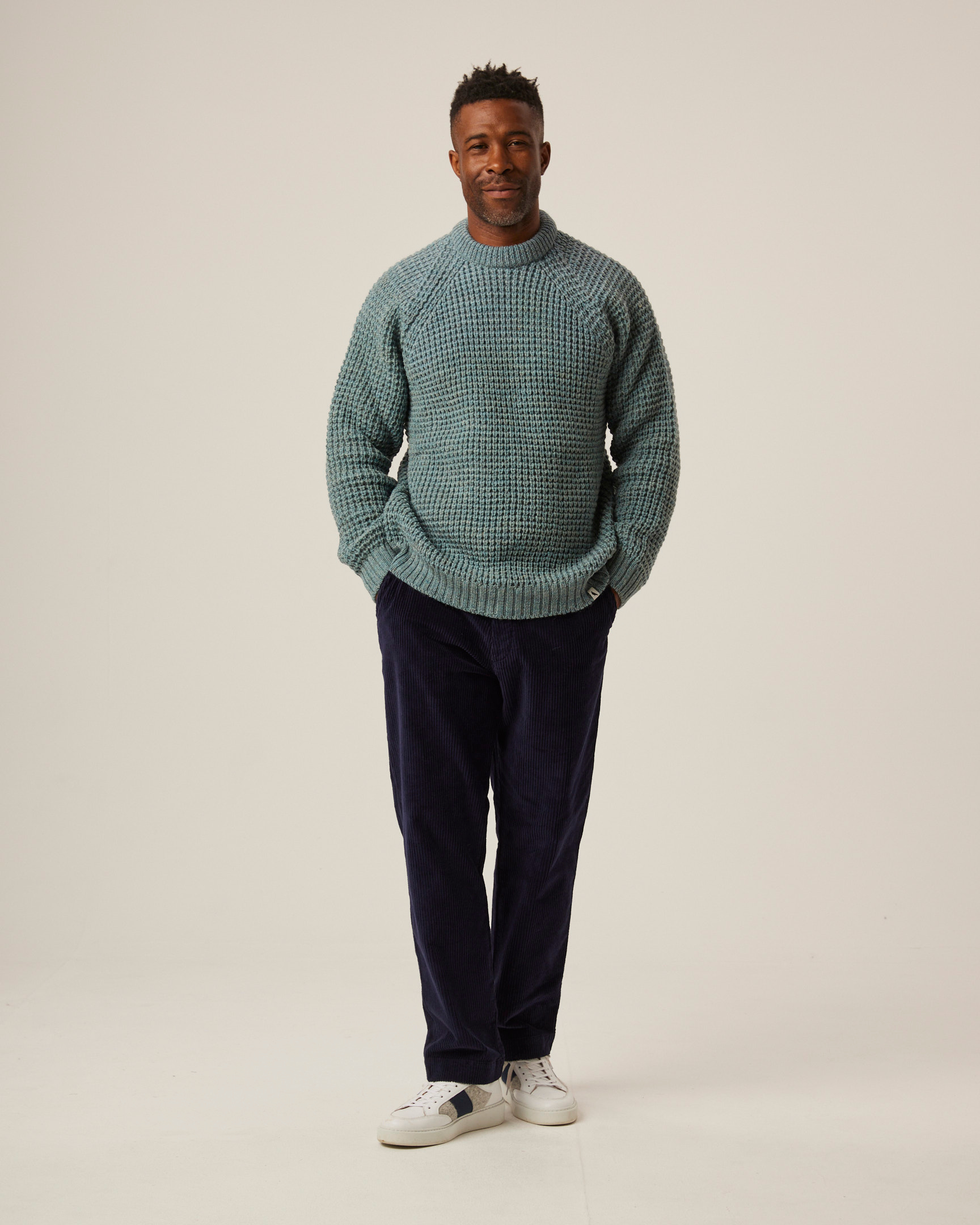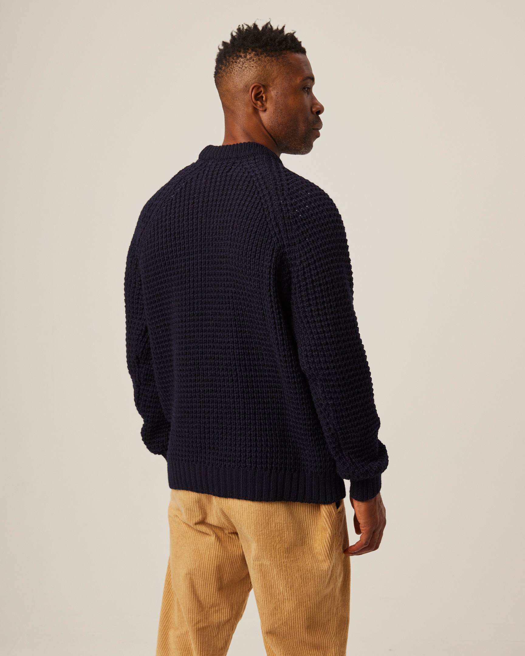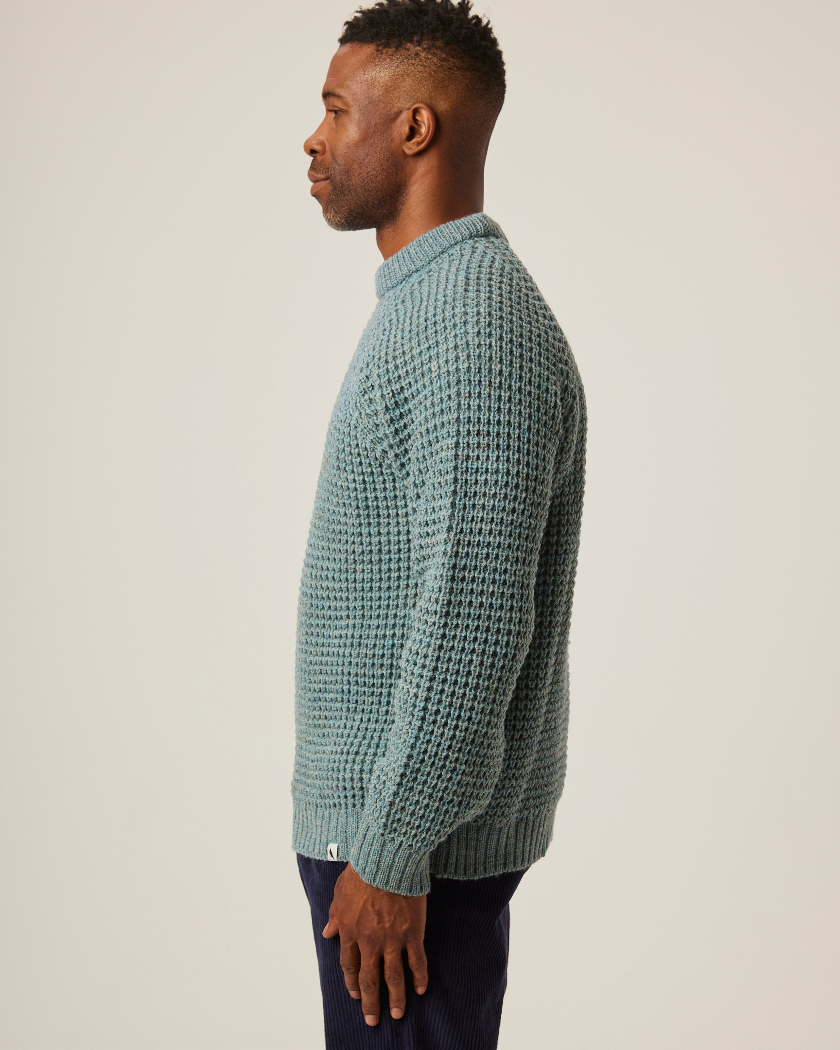 A traditional waffle knit to keep you looking stylish throughout the year. Composed of 100% British wool sheared from Yorkshire-raised sheep just 60 miles away from our factory and updated with a contemporary raglan sleeve to give it that casual feel, the Waffle Crew Jumper is a reliable staple for any wardrobe.