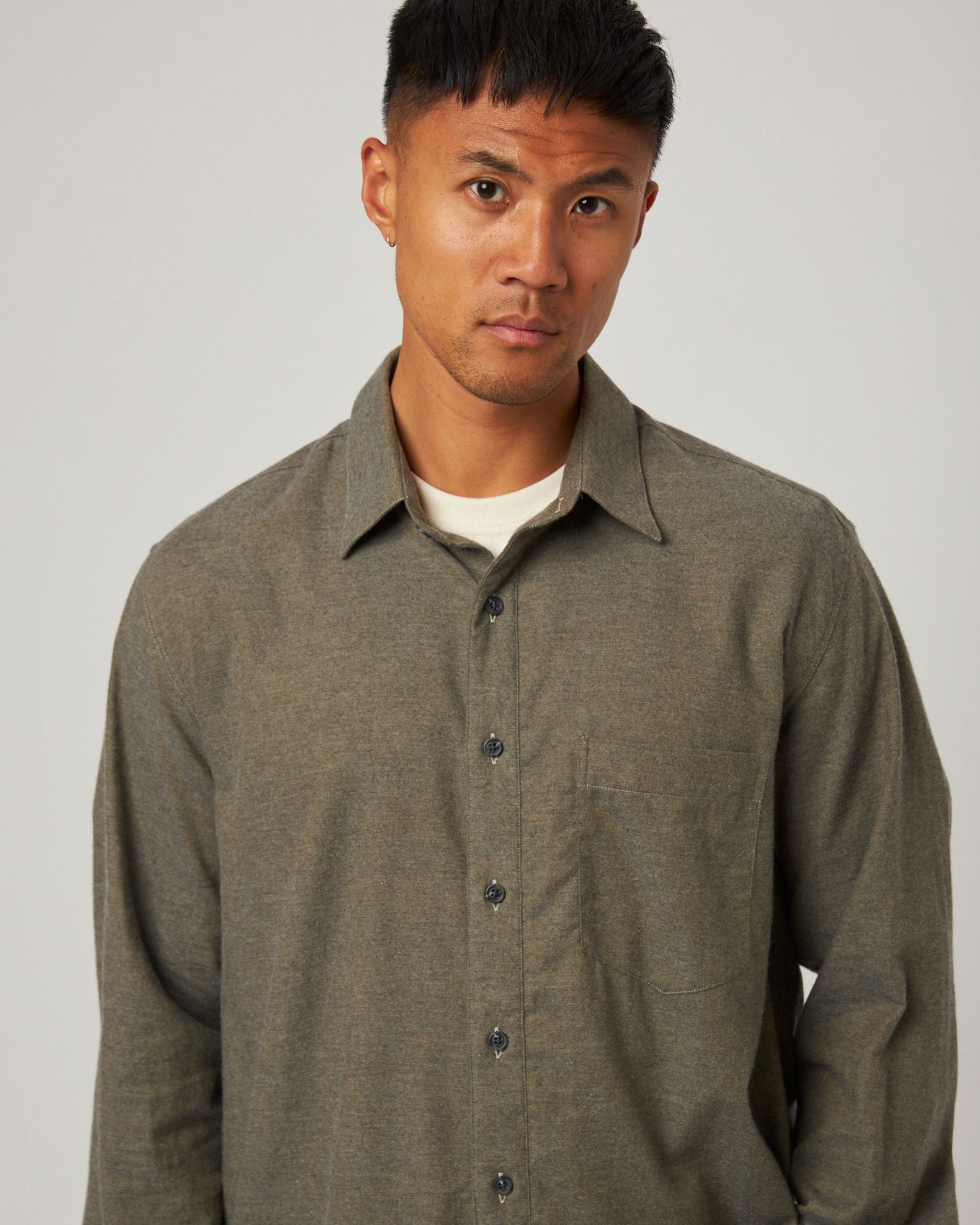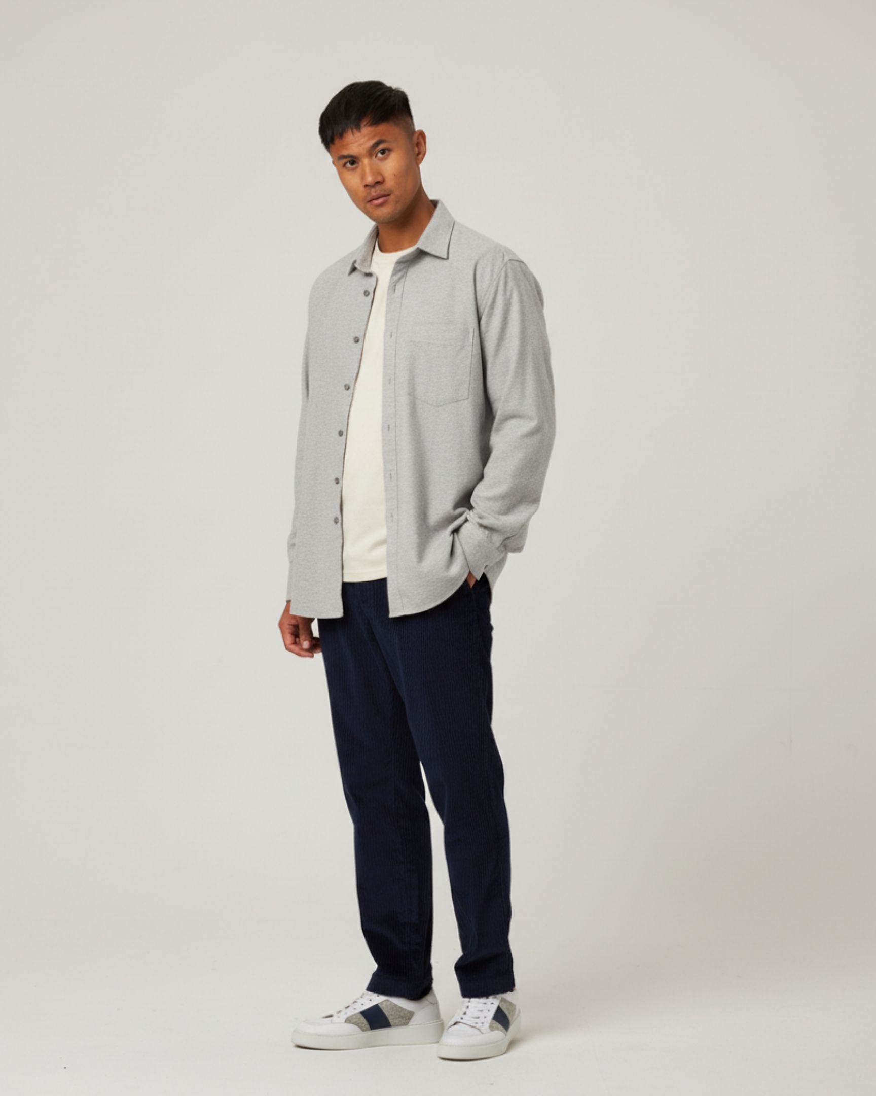 Crafted from a luxurious cotton cashmere blend, this men's shirt offers unparalleled softness and comfort. Perfect for any season, this versatile shirt combines the breathability of cotton shirts with the elegant drape and warmth of cashmere shirts, making it a sophisticated and essential addition to your wardrobe.