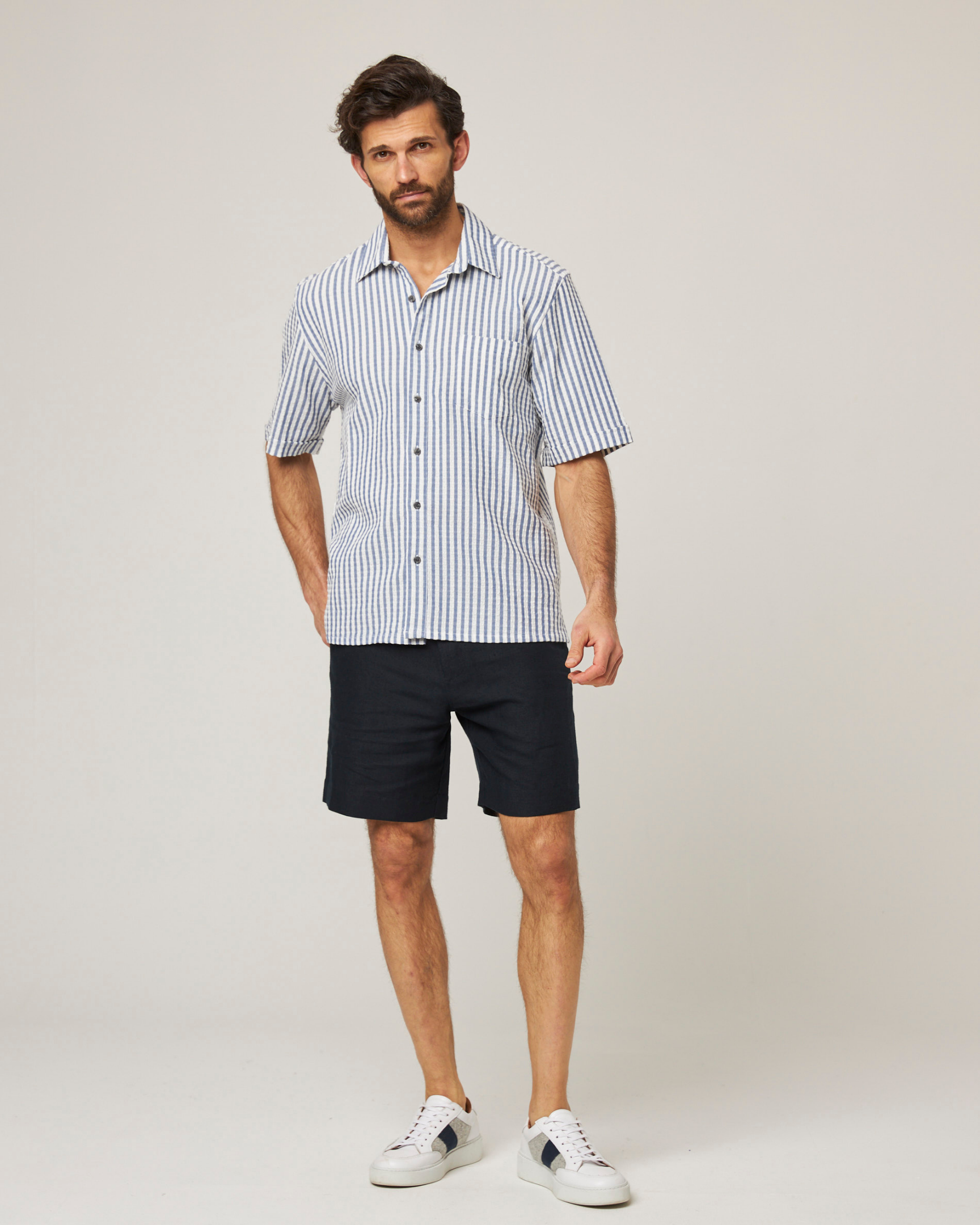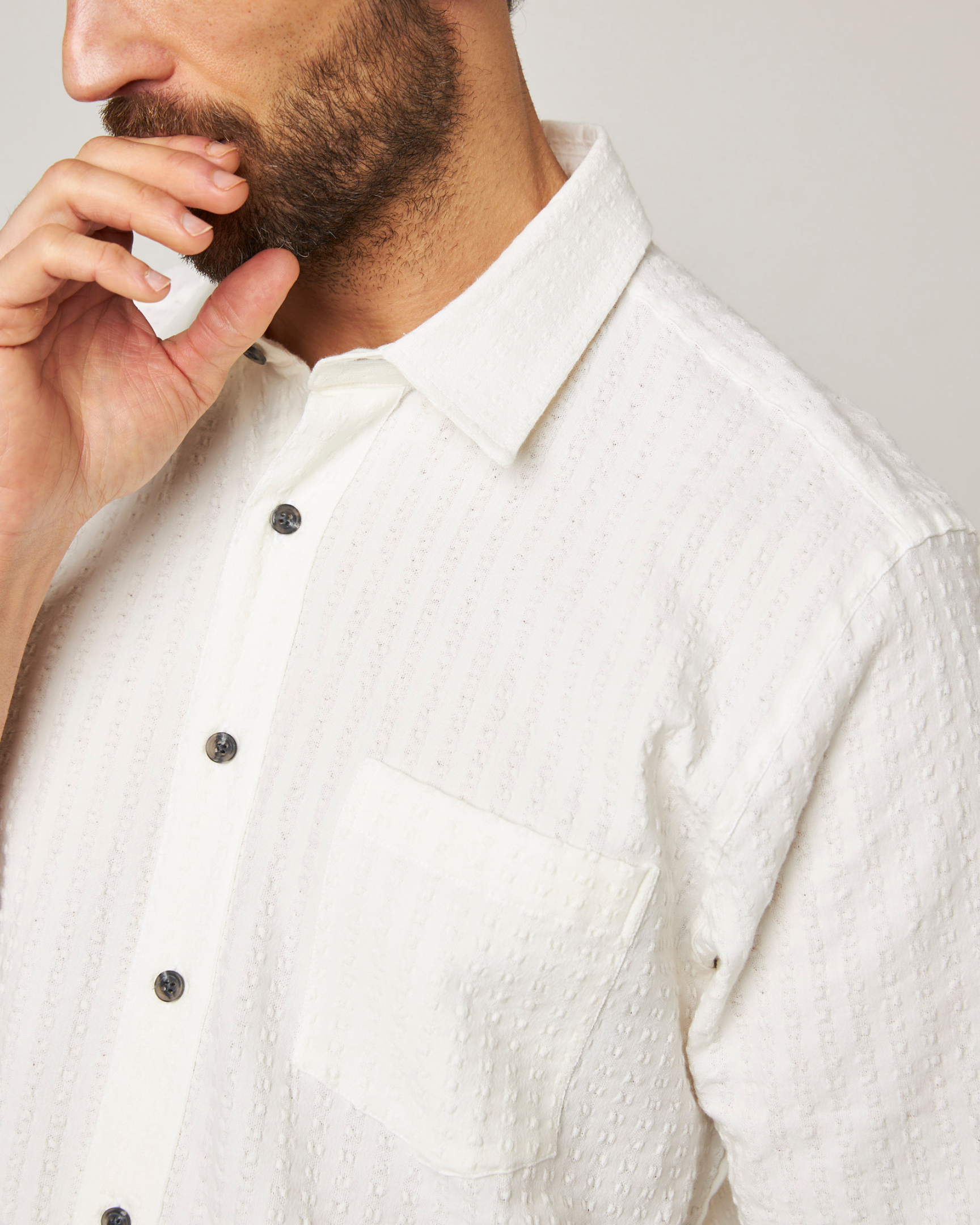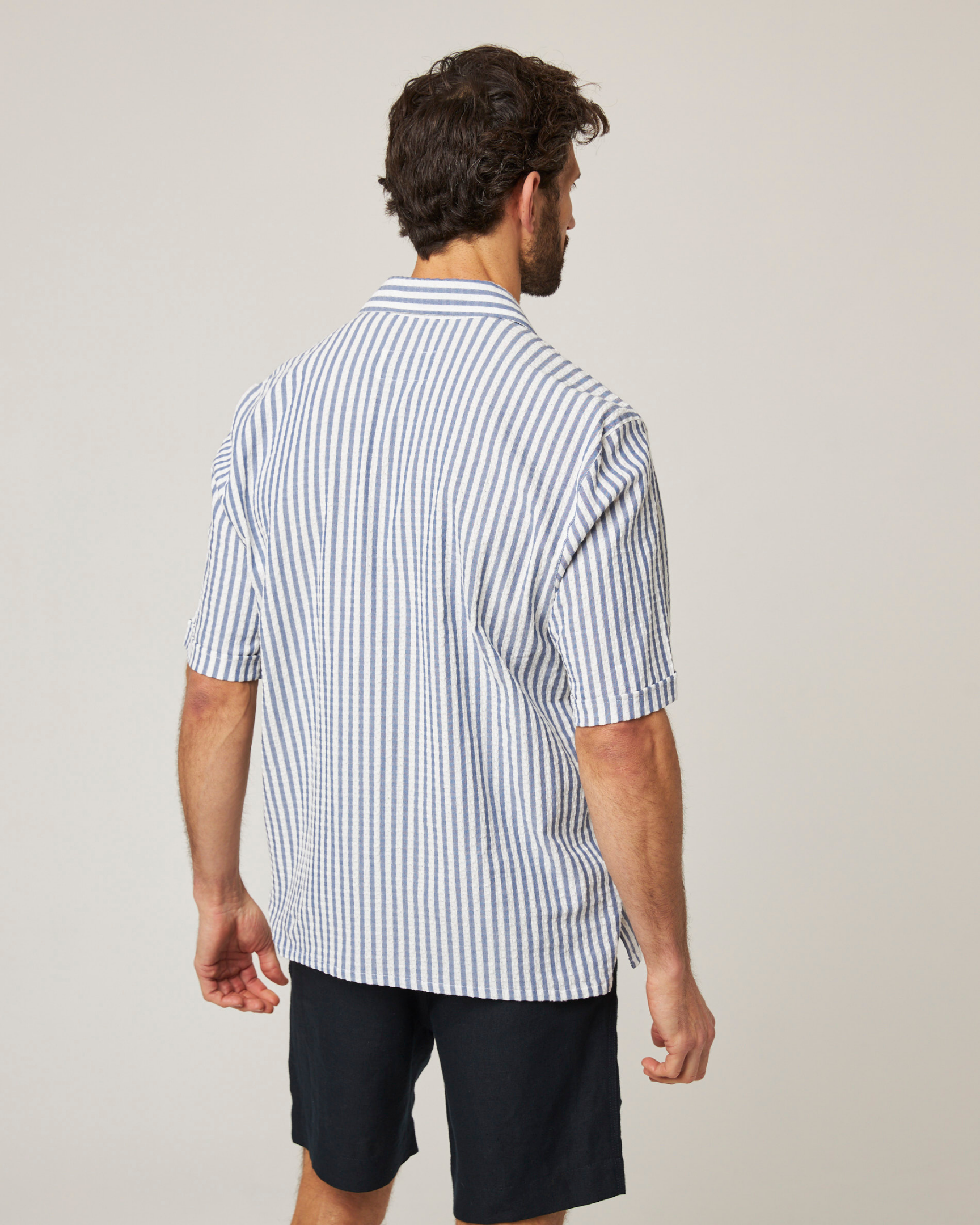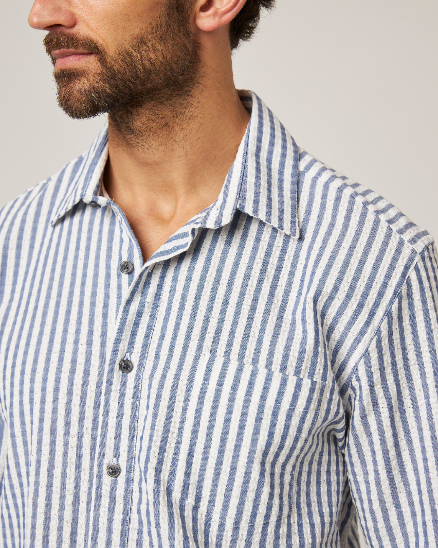 The Beach Shirt is an instant summer classic. Using the colours of the coast, this 100% cotton shirt adds a timeless look to your summer wardrobe. The breathable nature of a button down seersucker shirt means the Beach Shirt can be worn as a second layer or as a single piece.