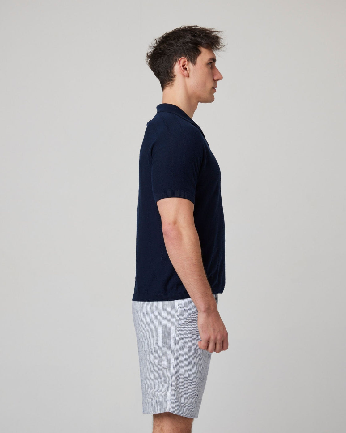 The Alma Polo Shirt is the perfect first layer for summer adventures. A lightweight cotton polo shirt with a textured knit to provide greater breathability for warmer days. Easily styled with shorts or chinos, the Alma Polo Shirt is this summer's smart-casual piece.