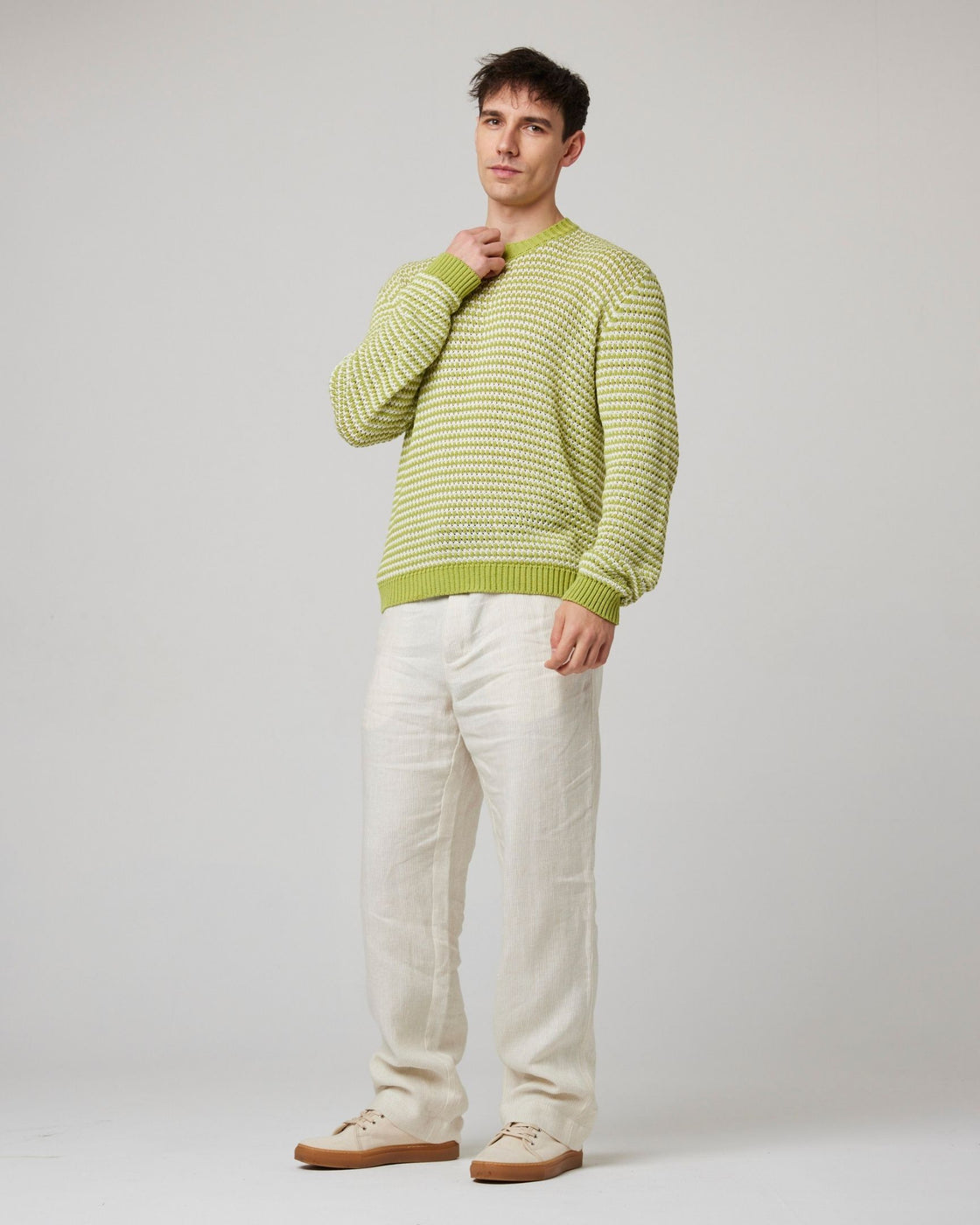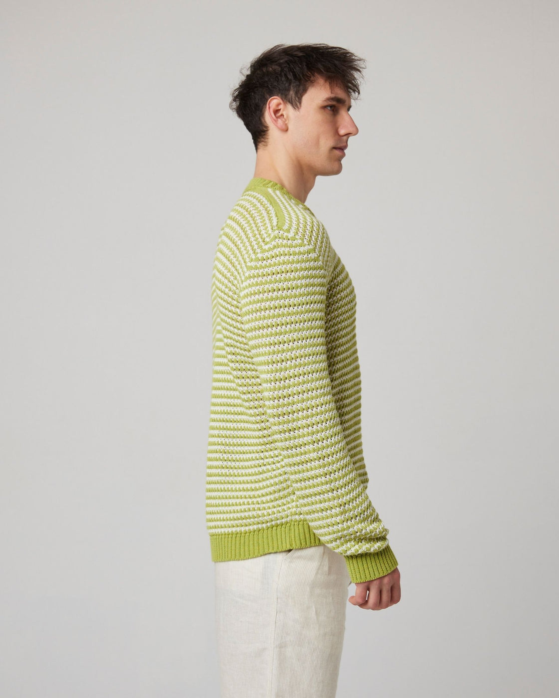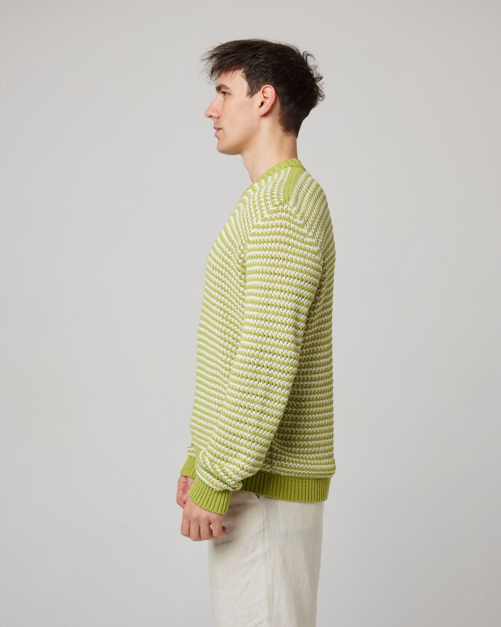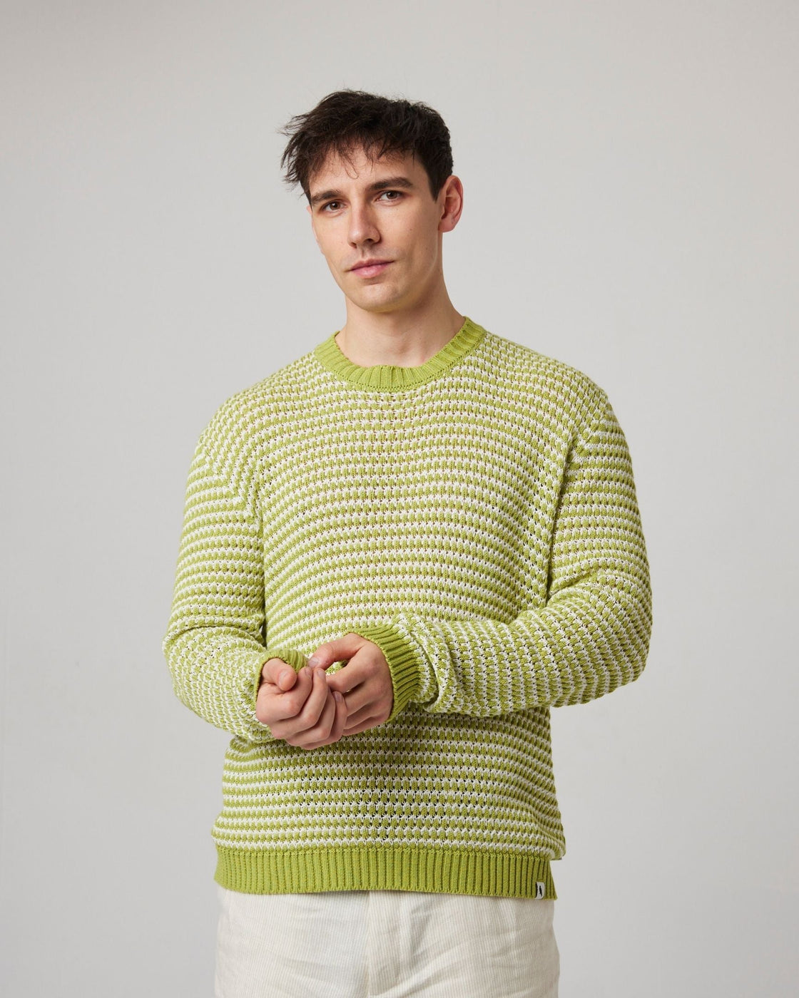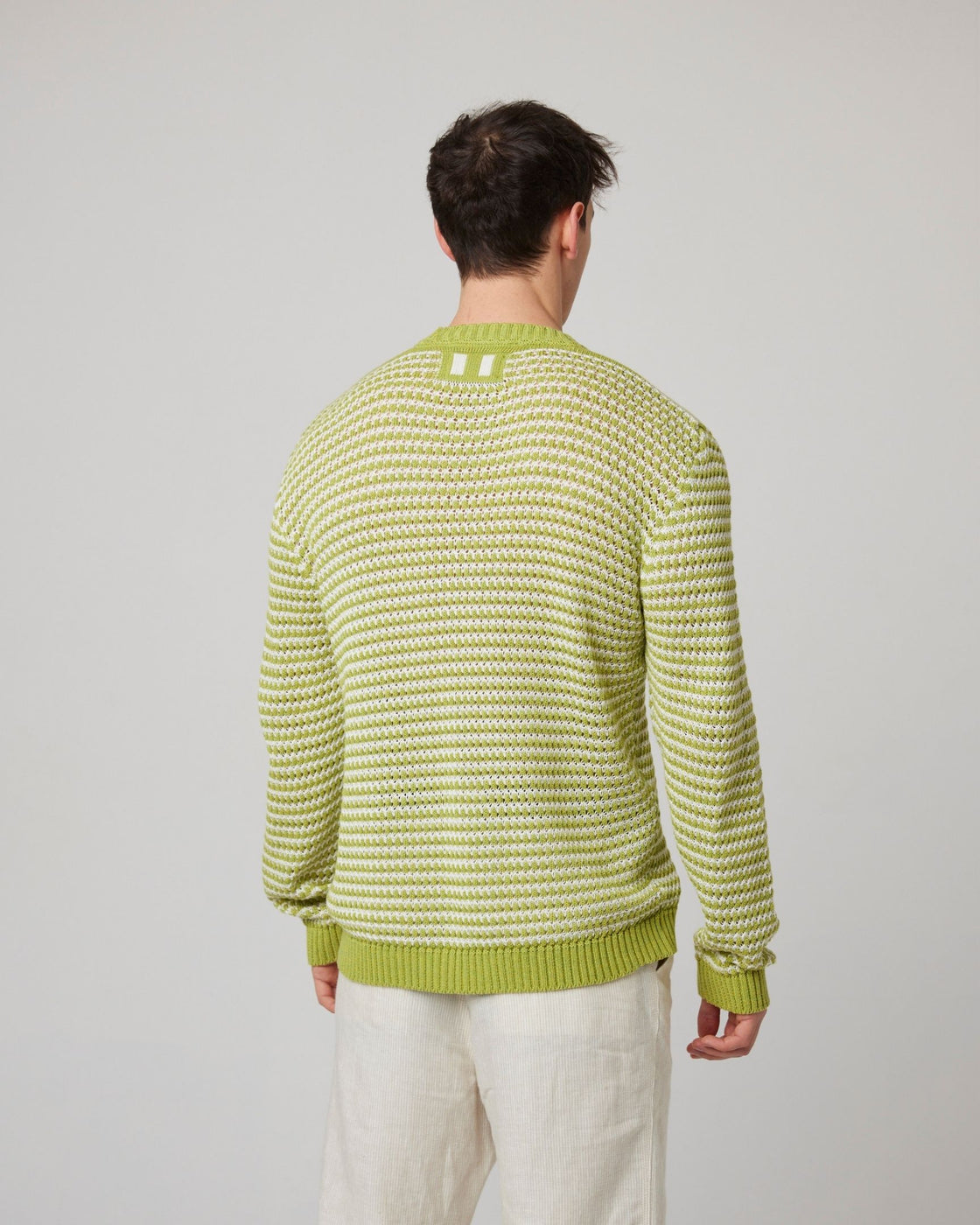 A lightweight super soft crew neck jumper that doesn't compromise on style. Its crochet design provides a lightweight and breathable feel, offering greater movement whilst maintaining its eye-catching appearance. The Island jumper has a subtle pause logo knitted across the back of the garment, representing the importance of slowing down and enjoying the moment.