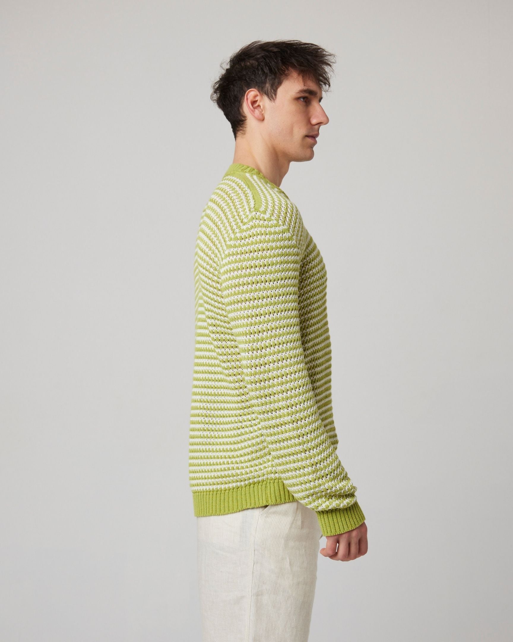 A crochet crew neck jumper