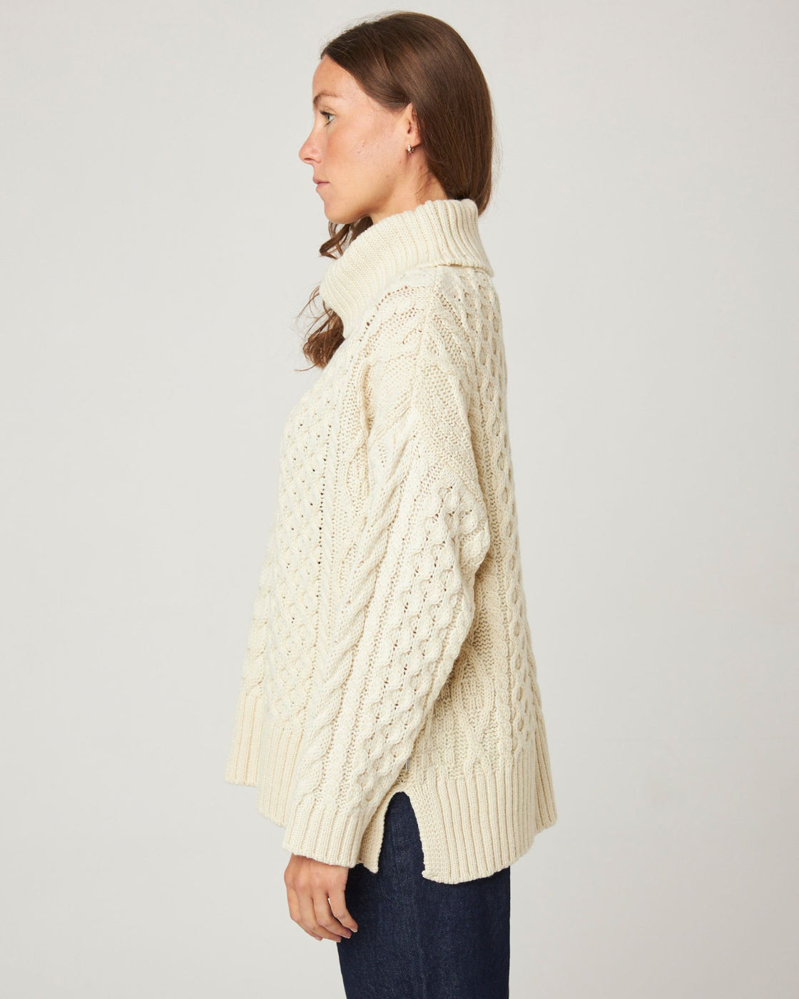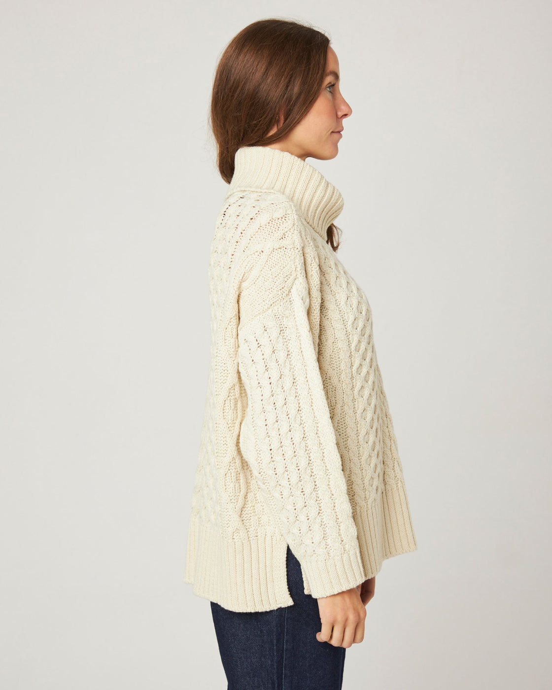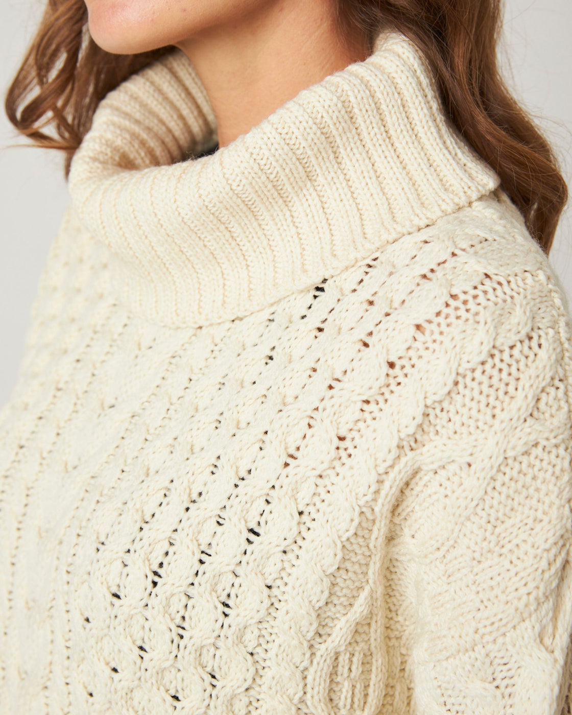 The Martha Polo Neck Jumper integrates various cable knit details to provide a subtle sophistication to the knitted piece. Made 100% from merino wool, the jumper provides perfect temperature regulation as it maintains the warmth whilst being breathable to prevent overheating.
