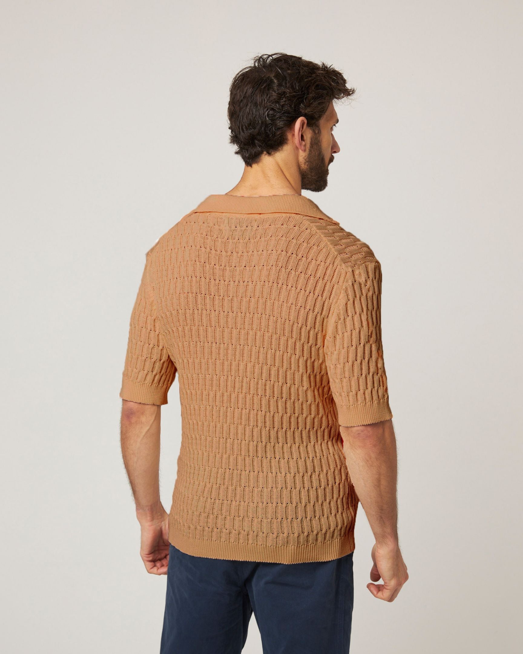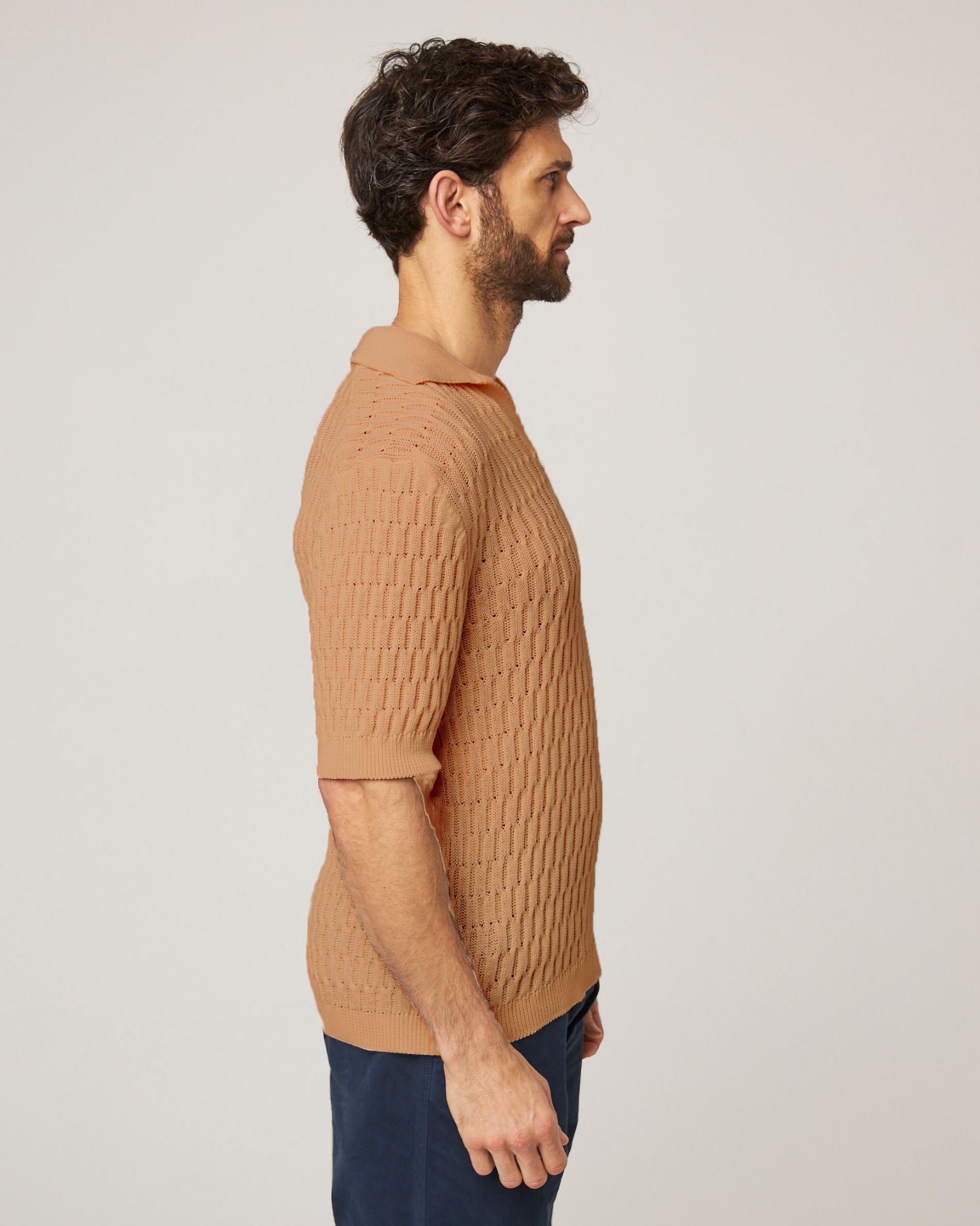 The Cove Polo Shirt offers a lightweight knitted polo shirt suitable for any formality. Combining a relaxed fit with an intricately textured knit, this cotton Polo Shirt provides comfort and style for any occasion, making it a summer wardrobe staple.