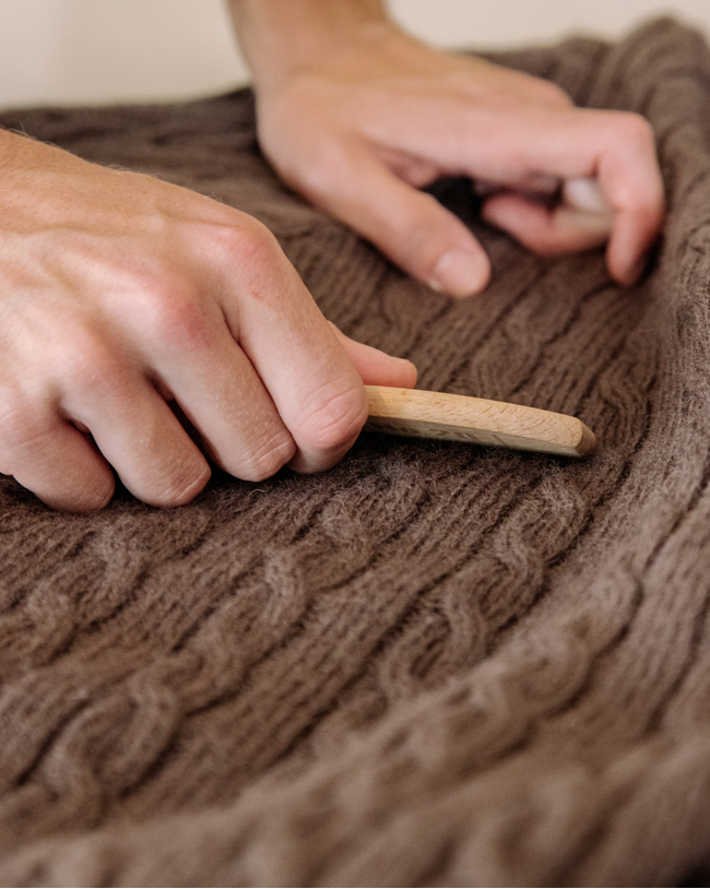 This Beechwood Cashmere Comb removes the bobbles from your knitwear without damaging the fabric. The sustainable and uncoloured Beechwood Comb keeps your garments looking new by gently combing the fabric in one direction.