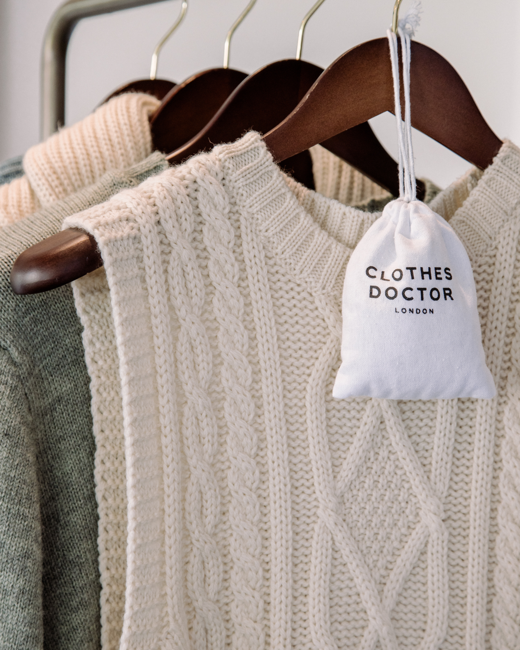 Scented with Lavender, Patchouli, Lemongrass, and Eucalyptus, either hang the bag in your wardrobe or leave in your drawers to repel moths and scent your clothes. A treat for you, a treatment for your clothes.