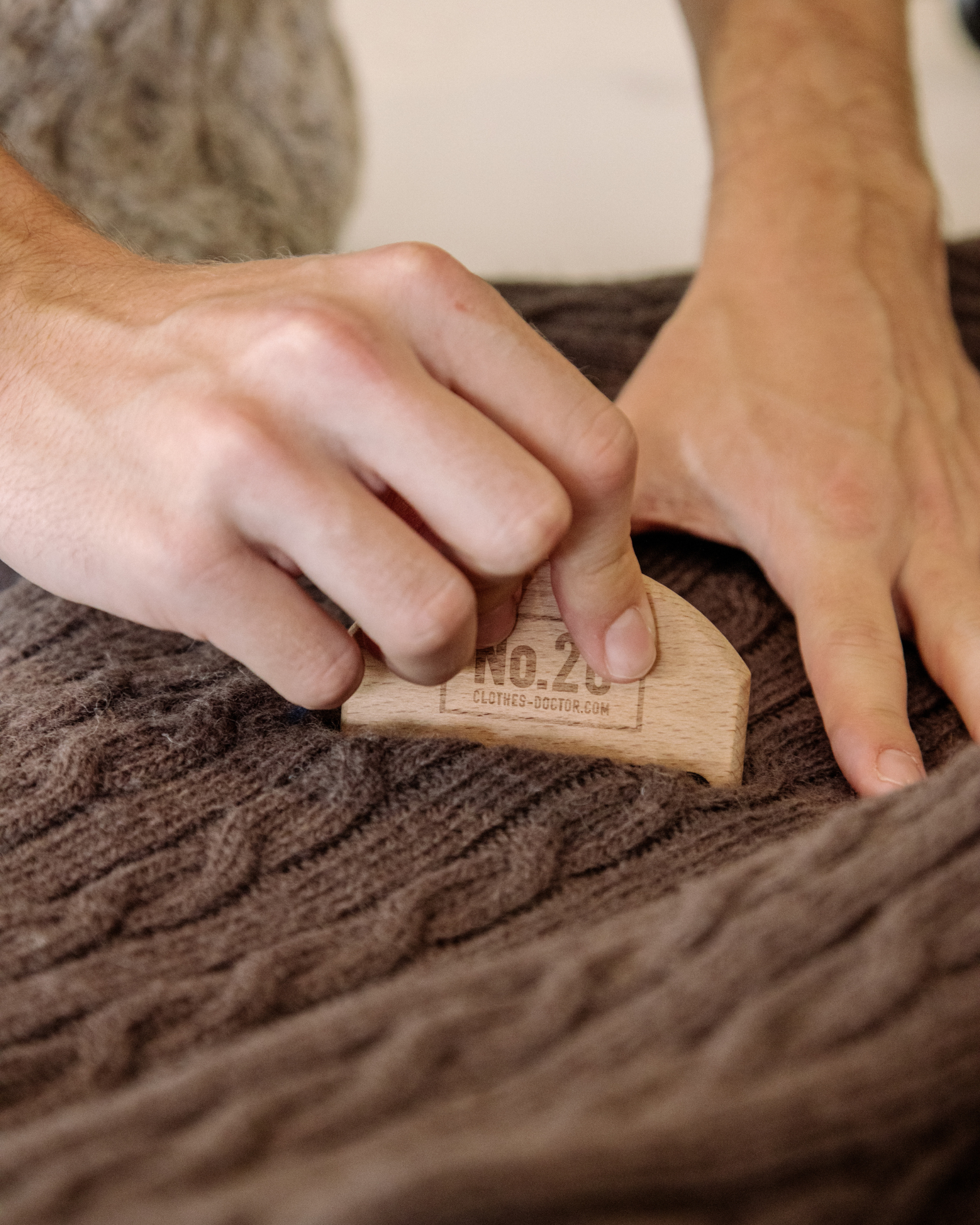 This Beechwood Cashmere Comb removes the bobbles from your knitwear without damaging the fabric. The sustainable and uncoloured Beechwood Comb keeps your garments looking new by gently combing the fabric in one direction.
