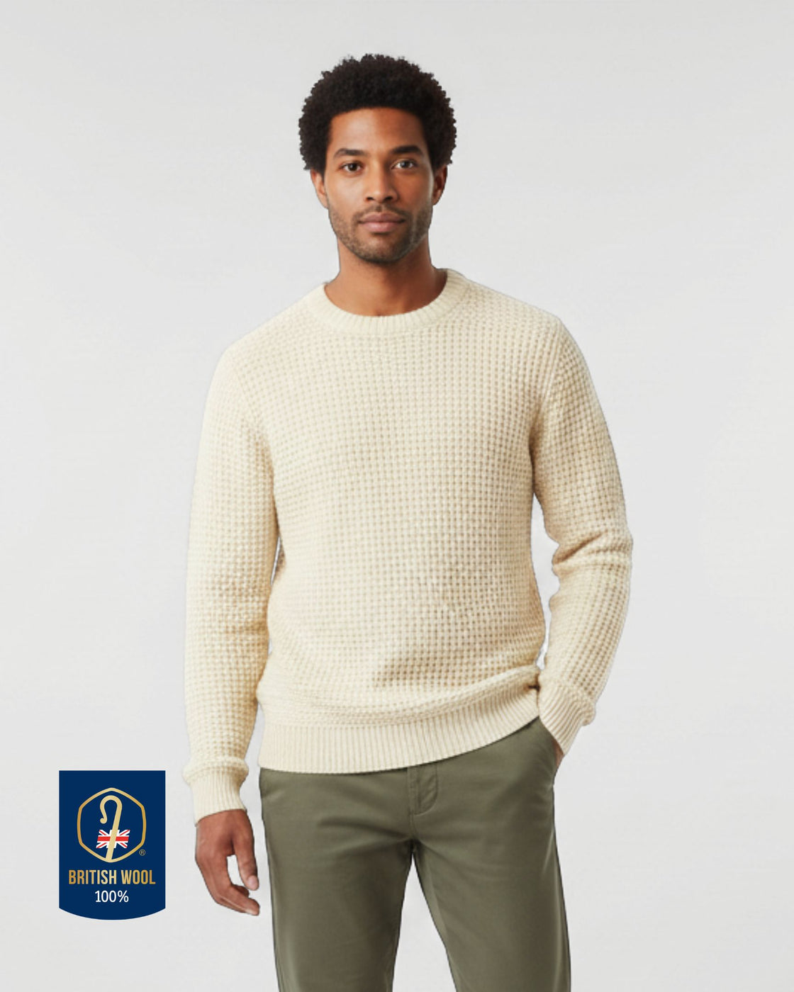 Composed of 100% British wool sheared from Yorkshire-raised sheep just 60 miles away from our factory. This classic waffle knit crew neck jumper is a perfect addition to your wardrobe, keeping you stylish all year round.